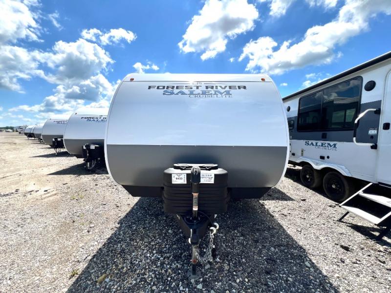 The Salem Cruise Lite travel trailers and toy haulers are value-minded units packed with great camping features! There are a variety of floorplans to choose from between two different regions. The enclosed Accessibelly will help protect against the elements and debris during transport, and the exterior retro/metal redesign is sure to be eye-catching! There are stylish roller shades inside, along with updated backsplash, elegant curtain rods and curtains, plus many more interior comforts! Choose a Salem Cruise Lite today for quality and value!