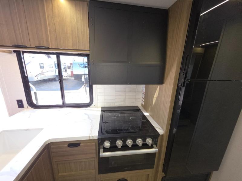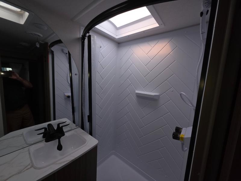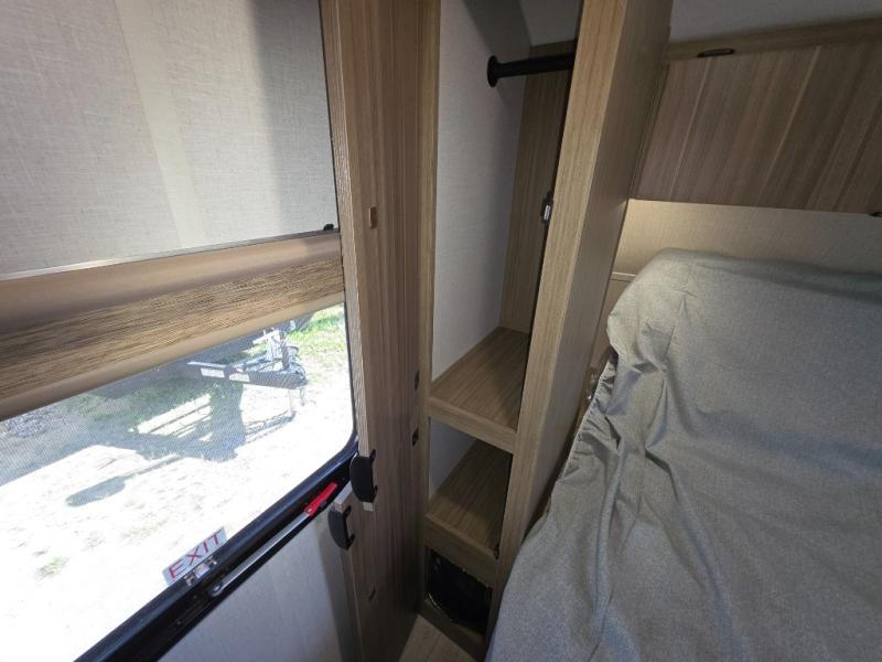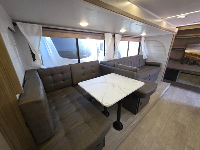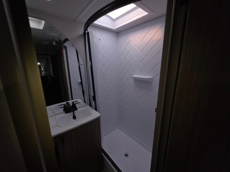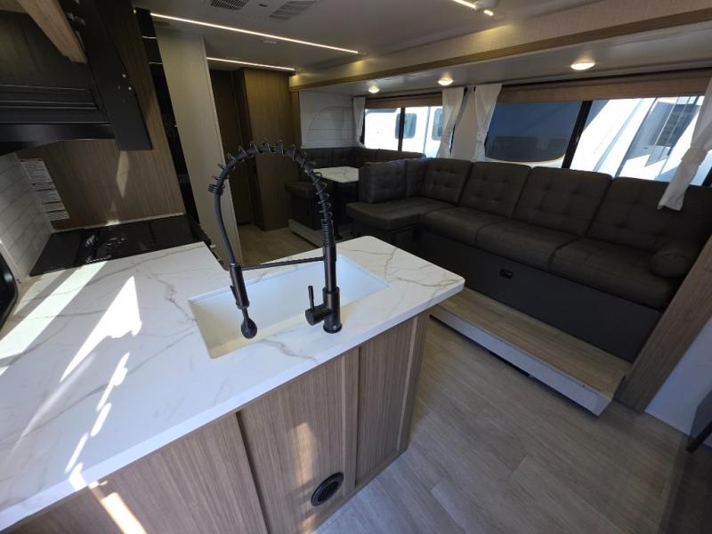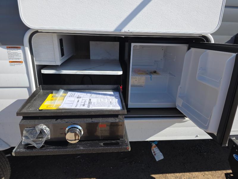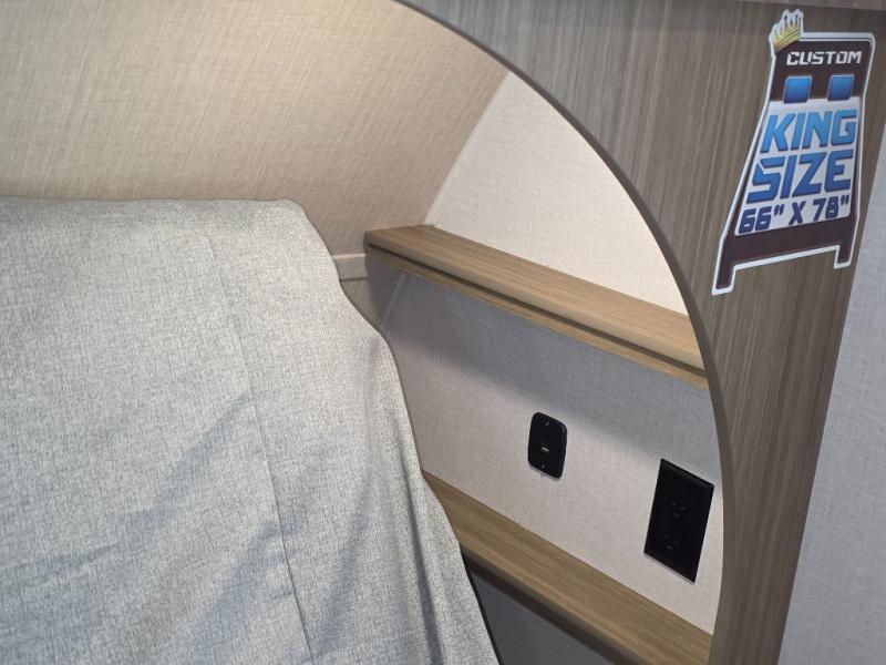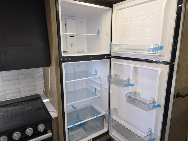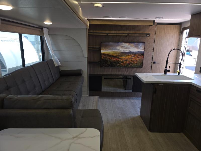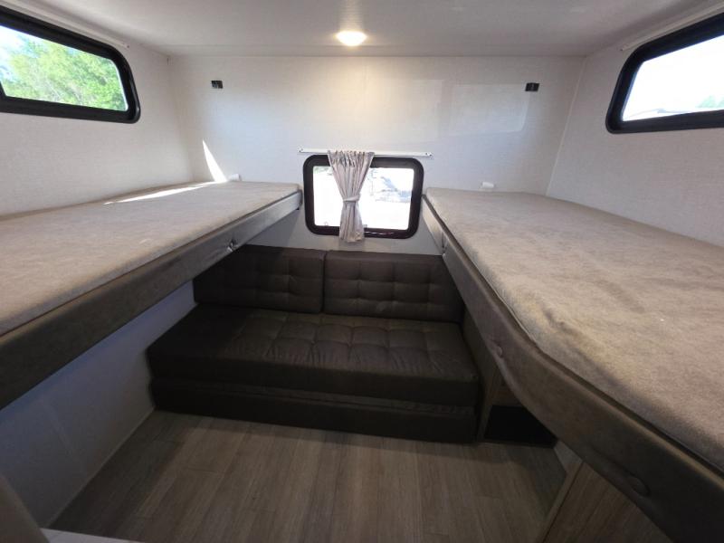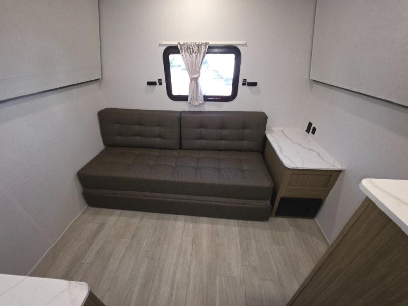 This travel trailer is new to the lineup and offers a large amount of versatility! The rear private bunkhouse has two 30" x 74" Versa-bunks and a Versa-queen bed so that more can join in on the camping fun. Start each morning feeling clean and fresh after showering in the walk-in shower with fiberglass surround then head to the front private bedroom to change. The kitchen has an oversized refrigerator to keep your perishables fresh, a cooktop for meals, and a U-shaped dinette for dining, game time, or just hanging out.