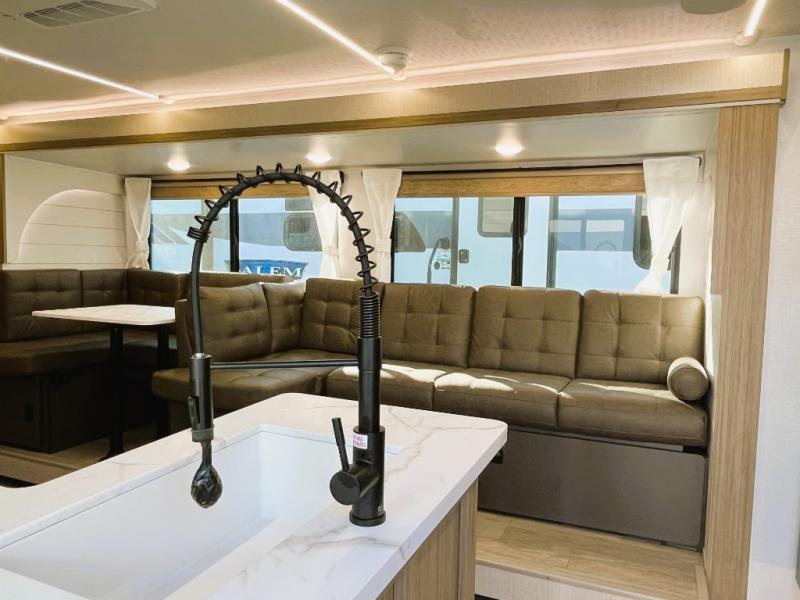 The Salem Cruise Lite travel trailers and toy haulers are value-minded units packed with great camping features! There are a variety of floorplans to choose from between two different regions. The enclosed Accessibelly will help protect against the elements and debris during transport, and the exterior retro/metal redesign is sure to be eye-catching! There are stylish roller shades inside, along with updated backsplash, elegant curtain rods and curtains, plus many more interior comforts! Choose a Salem Cruise Lite today for quality and value!