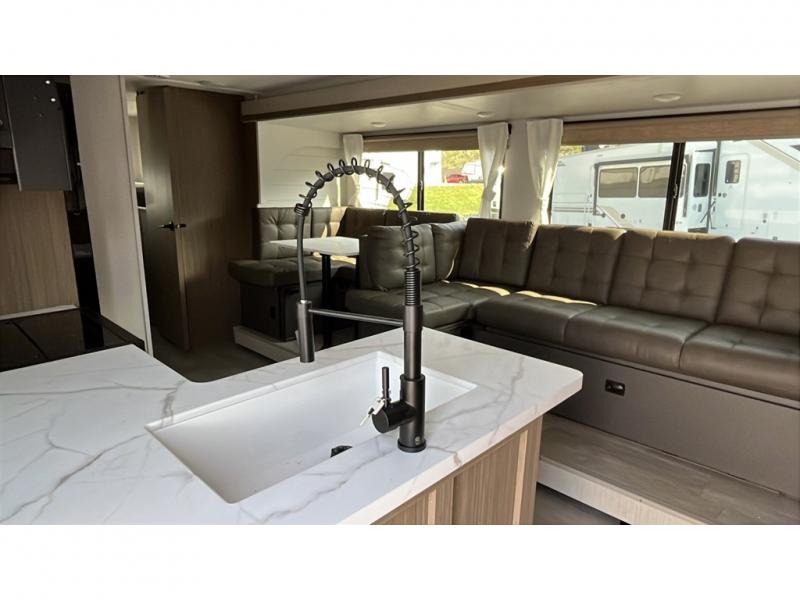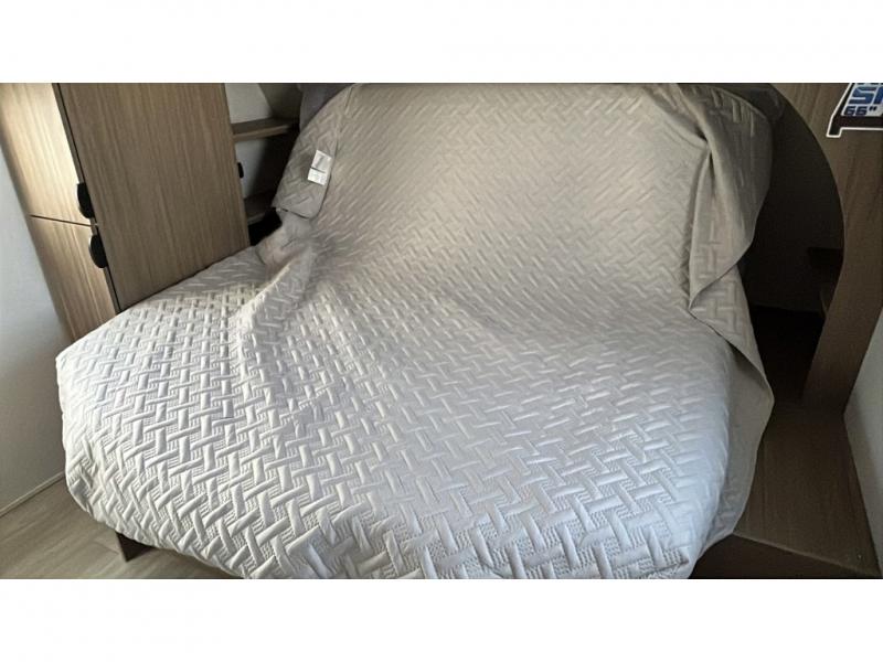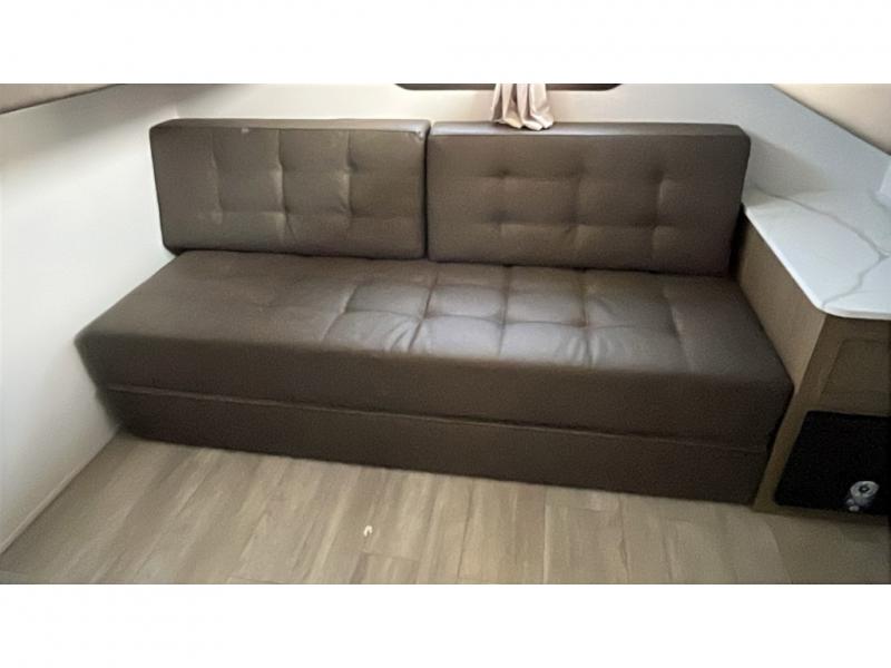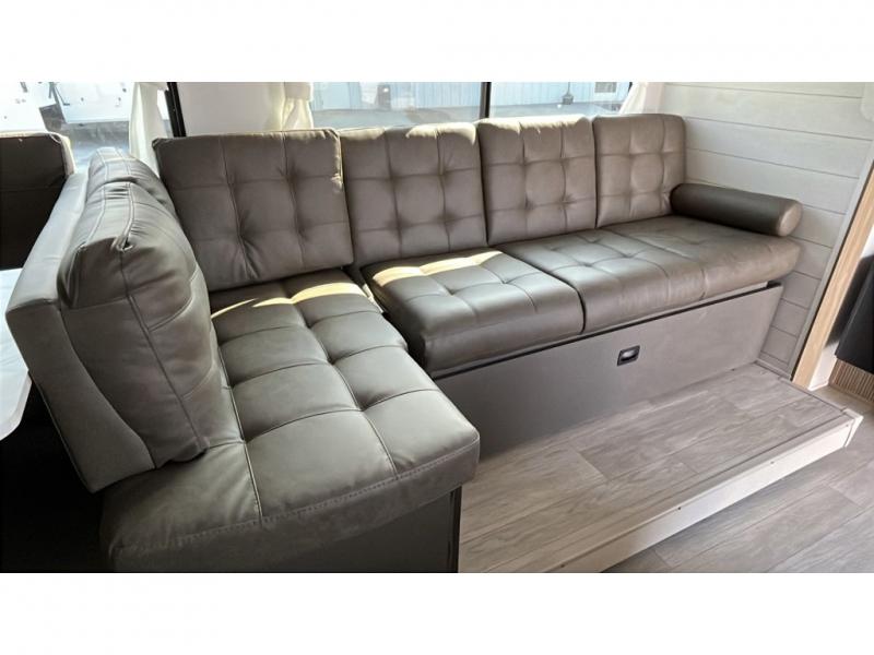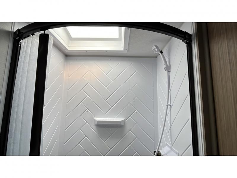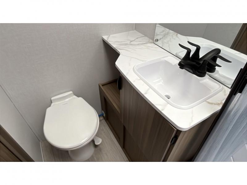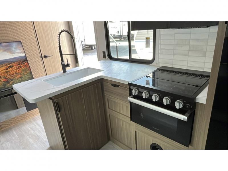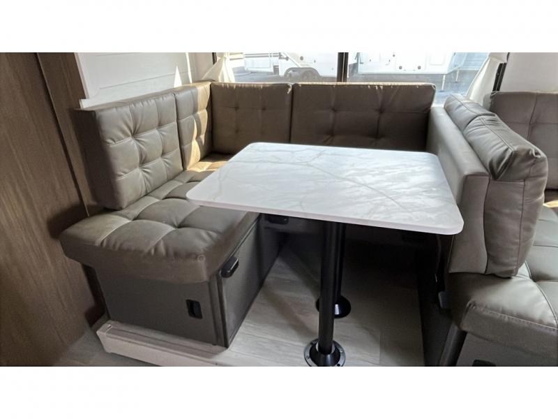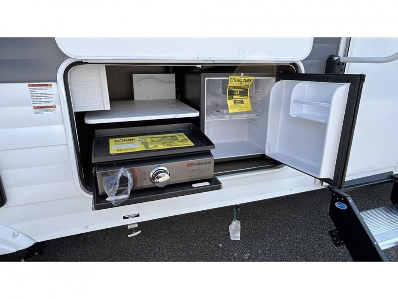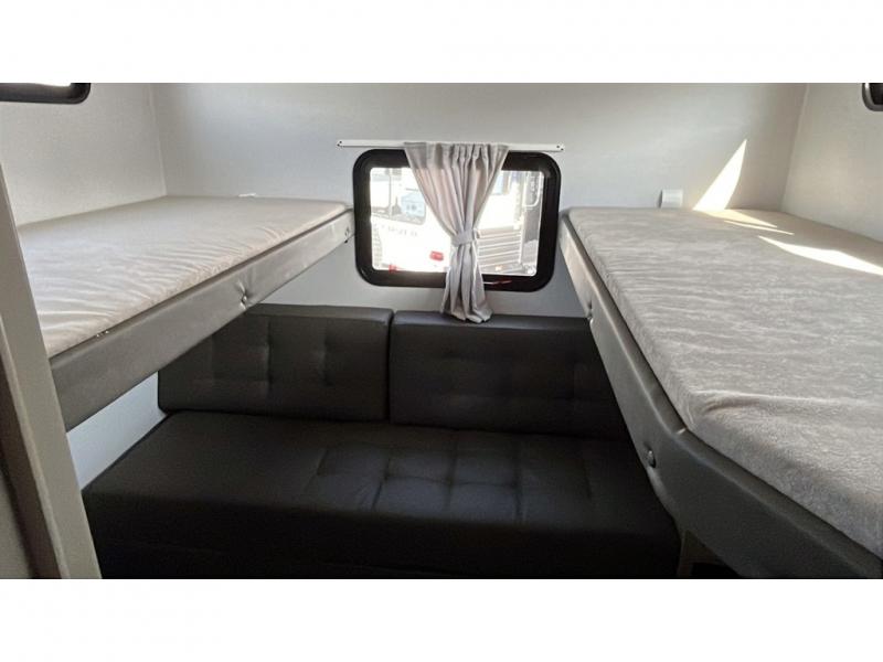 This travel trailer is new to the lineup and offers a large amount of versatility! The rear private bunkhouse has two 30" x 74" Versa-bunks and a Versa-queen bed so that more can join in on the camping fun. Start each morning feeling clean and fresh after showering in the walk-in shower with fiberglass surround then head to the front private bedroom to change. The kitchen has an oversized refrigerator to keep your perishables fresh, a cooktop for meals, and a U-shaped dinette for dining, game time, or just hanging out.