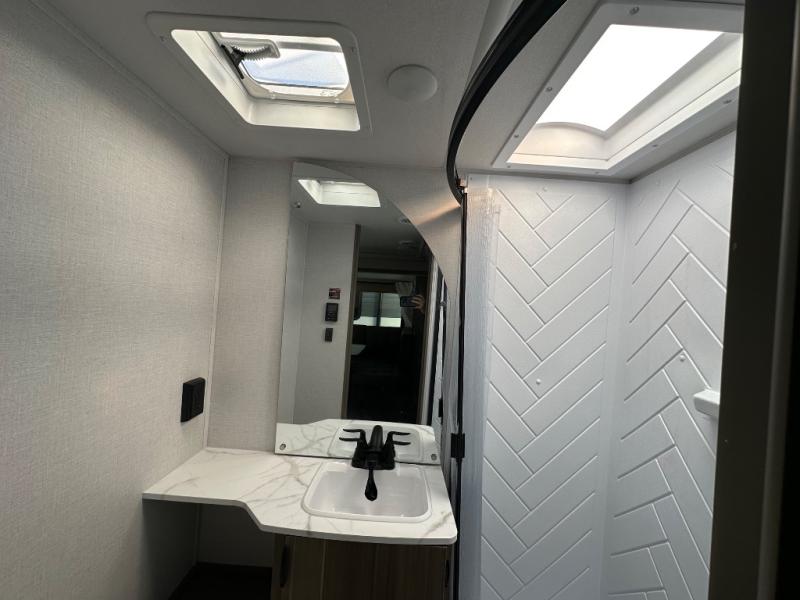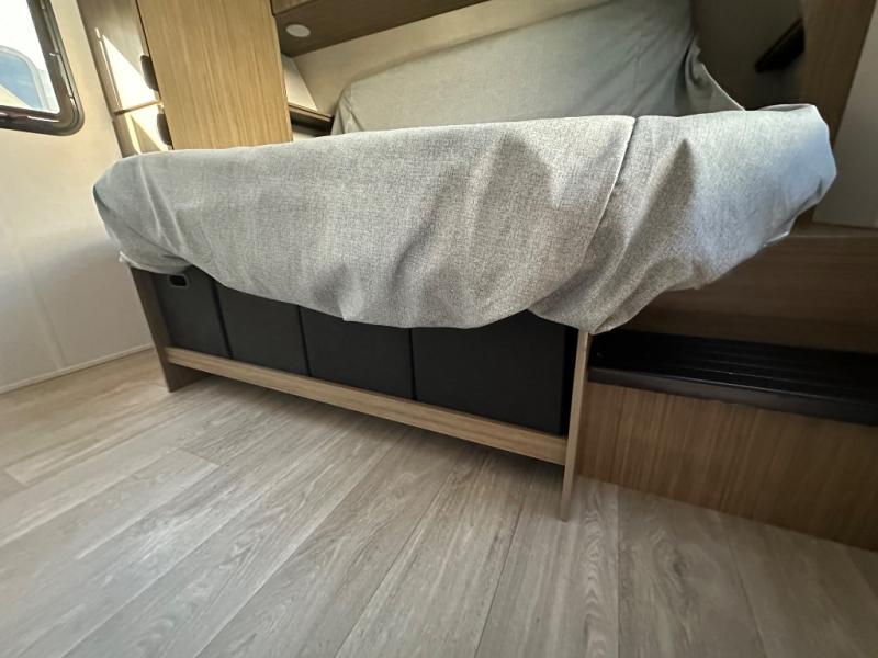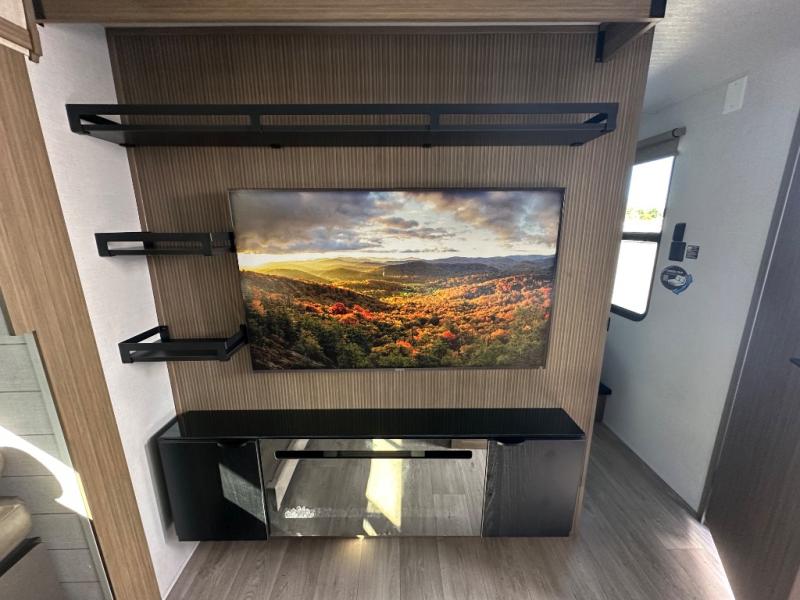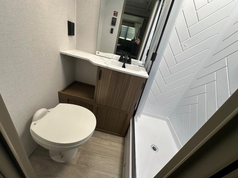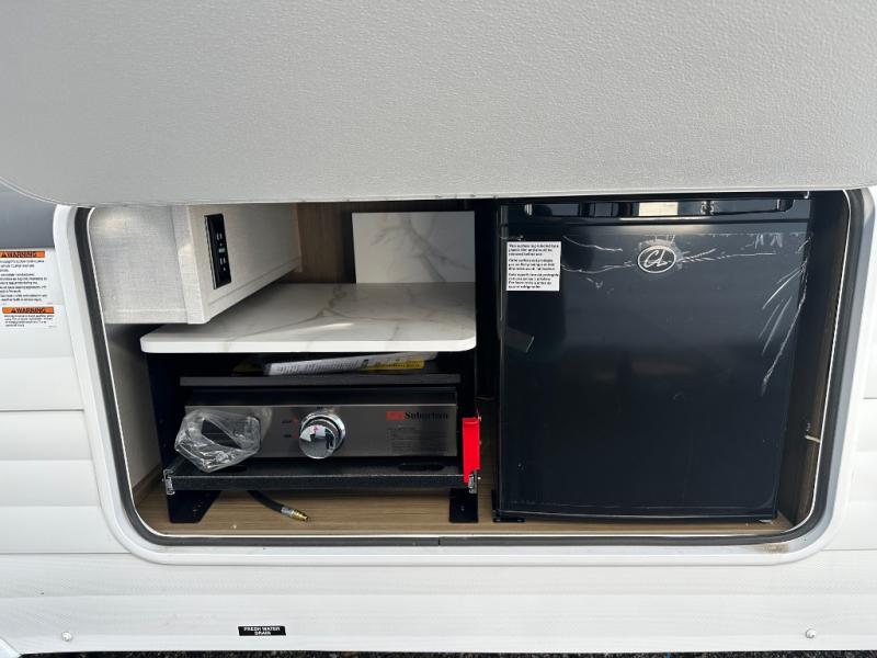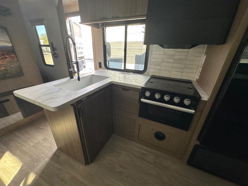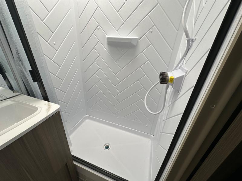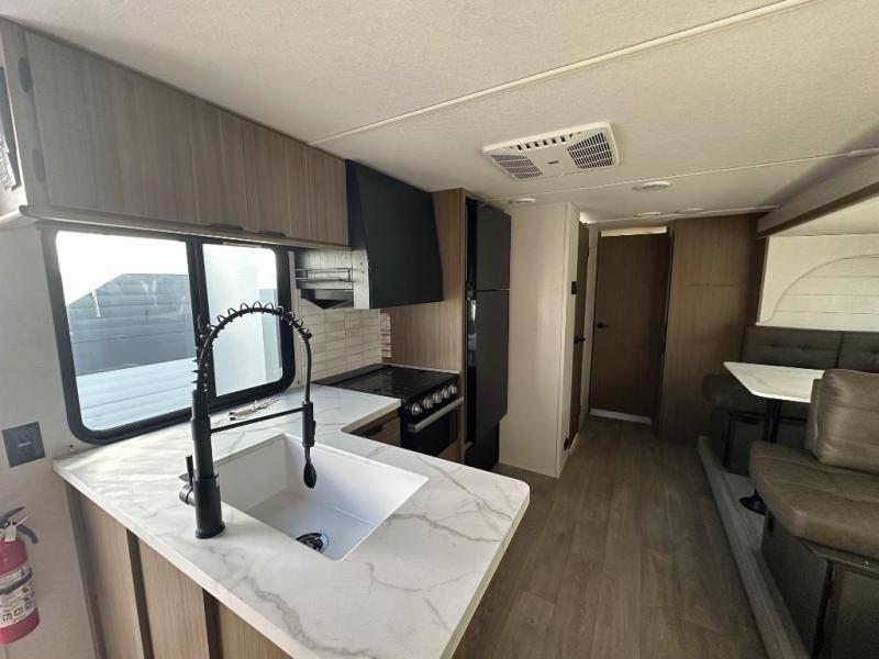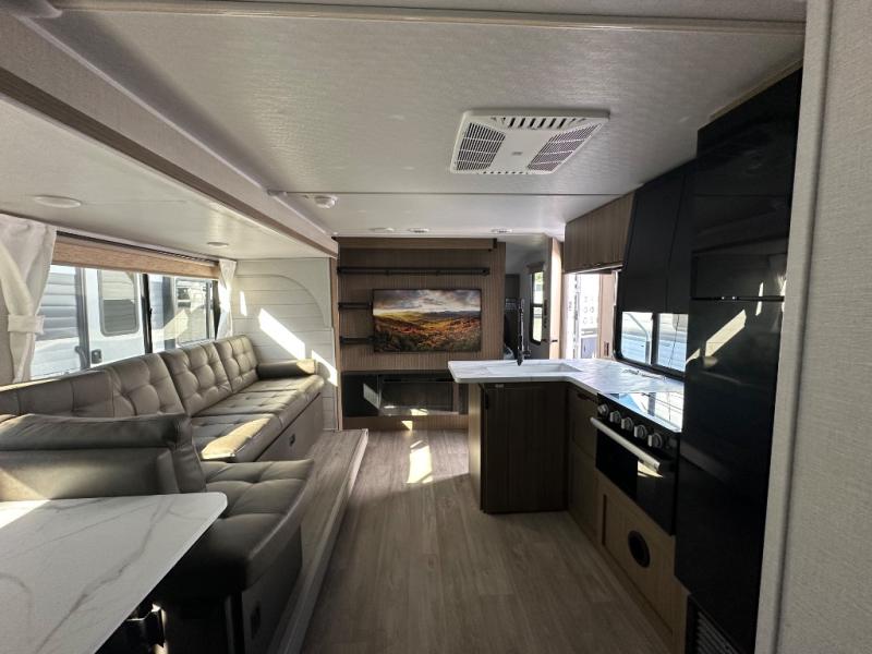 This travel trailer is new to the lineup and offers a large amount of versatility! The rear private bunkhouse has two 30" x 74" Versa-bunks and a Versa-queen bed so that more can join in on the camping fun. Start each morning feeling clean and fresh after showering in the walk-in shower with fiberglass surround then head to the front private bedroom to change. The kitchen has an oversized refrigerator to keep your perishables fresh, a cooktop for meals, and a U-shaped dinette for dining, game time, or just hanging out.