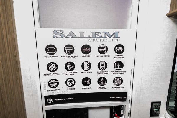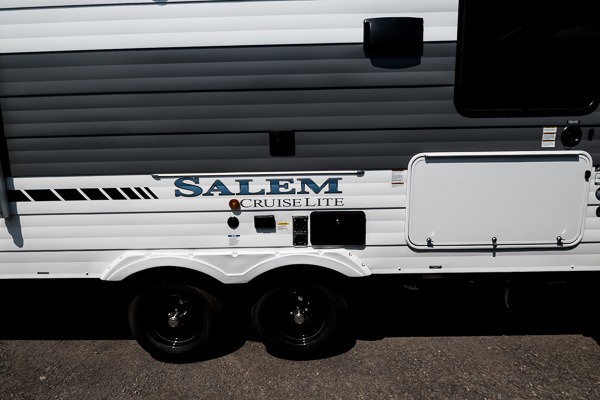 The Salem Cruise Lite travel trailers are packed with hassle-free camping amenities! There are a variety of floorplans to choose from so you can find the best one to fit your needs. The enclosed Accessibelly will help protect against the elements and debris during transport, and the exterior retro/metal redesign is sure to be eye-catching! There are stylish roller shades inside, along with updated backsplash, elegant curtain rods and curtains, plus many more interior comforts! Choose a Salem Cruise Lite travel trailer today for quality and value!