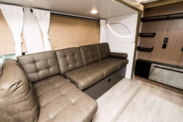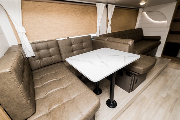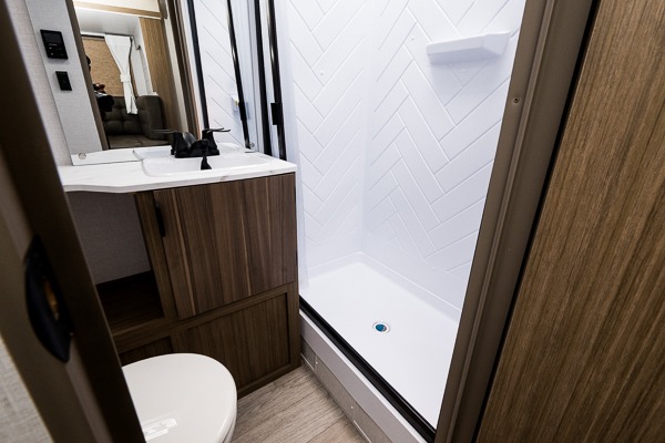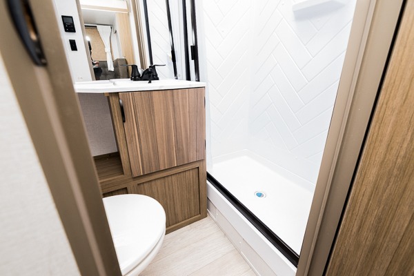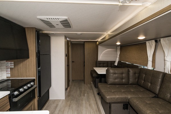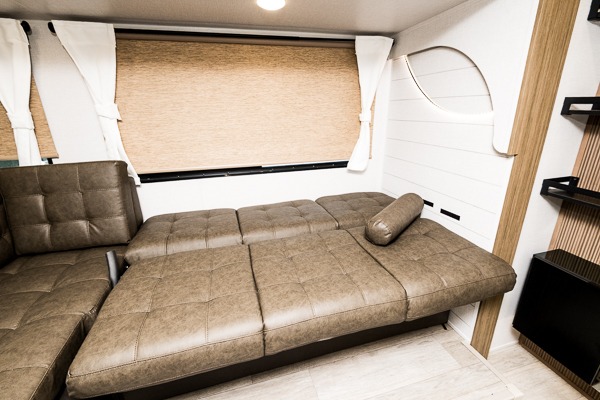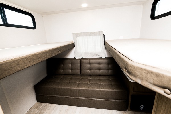 This travel trailer is new to the lineup and offers a large amount of versatility! The rear private bunkhouse has two 30" x 74" Versa-bunks and a Versa-queen bed so that more can join in on the camping fun. Start each morning feeling clean and fresh after showering in the walk-in shower with fiberglass surround then head to the front private bedroom to change. The kitchen has a refrigerator to keep your perishables fresh, a cooktop for meals, and a U-shaped dinette for dining, game time, or just hanging out.