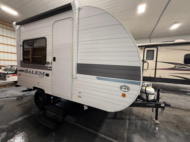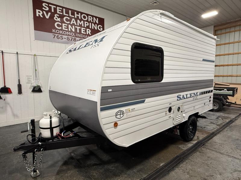The Forest River Salem FSX travel trailers and toy hauler travel trailers are ultra comfortable and lightweight, perfect for first time or seasoned campers alike! You will love how easy it will be to relax with residential features that will make your space feel just like home, and the durable construction means you can enjoy your RV for years to come. There are a wide variety of floorplans to choose from, including couple's trailers, bunk models, and toy haulers, all with full bath and kitchen amenities and plenty of storage for all your gear!