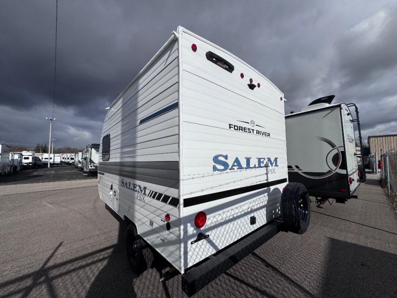 The Forest River Salem FSX travel trailers and toy hauler travel trailers are ultra comfortable and lightweight, perfect for first time or seasoned campers alike! You will love how easy it will be to relax with residential features that will make your space feel just like home, and the durable construction means you can enjoy your RV for years to come. There are a wide variety of floorplans to choose from, including couple's trailers, bunk models, and toy haulers, all with full bath and kitchen amenities and plenty of storage for all your gear!
