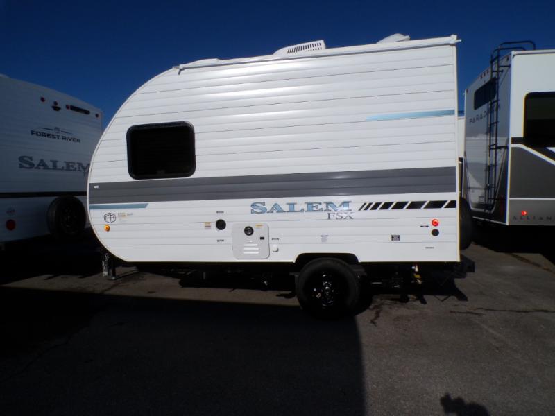 The Forest River Salem FSX travel trailers and toy hauler travel trailers are ultra comfortable and lightweight, perfect for first time or seasoned campers alike! You will love how easy it will be to relax with residential features that will make your space feel just like home, and the durable construction means you can enjoy your RV for years to come. There are a wide variety of floorplans to choose from, including couple's trailers, bunk models, and toy haulers, all with full bath and kitchen amenities and plenty of storage for all your gear!