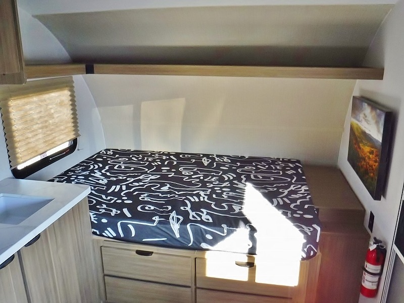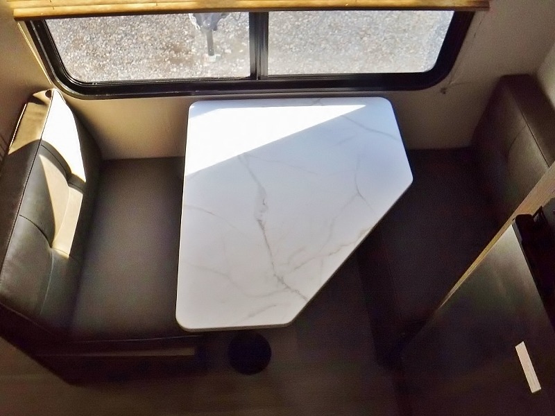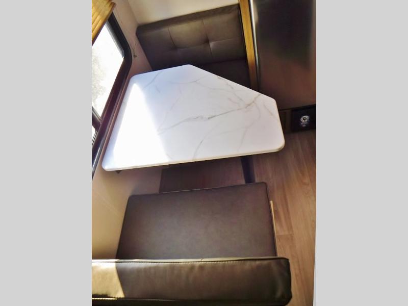 This lightweight travel trailer has everything you need to enjoy camping trips! There is a front east to west custom king bed with storage at the foot of the bed and overhead for your valuables. A private bath includes a toilet and walk-in shower so you can easily get ready each day, and you can prepare your meals on the two-burner cooktop when you get hungry. The booth dinette will provide dining space, along with sleeping space for one to two little ones. Don't let this trailer get away!