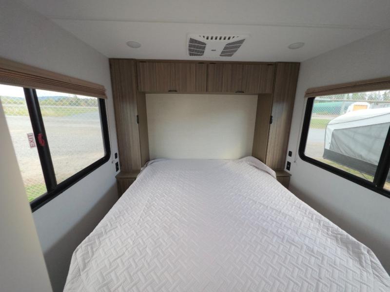 You will love this cozy travel trailer for all your camping needs! There is a front U-shaped dinette that will convert to a queen-sized bed at night, and the rear master bedroom includes a queen bed as well! The split style bath will be easily accessible for everyone, and there is plenty of storage space for all your gear, both inside and out! The kitchen comes with a two burner cooktop and microwave oven, plus a dual swinging 12V refrigerator for food storage. There is also an outside kitchen for breakfast outdoors, a high capacity axle for easy towing, and dual Group 24 battery trays for extended camping power!