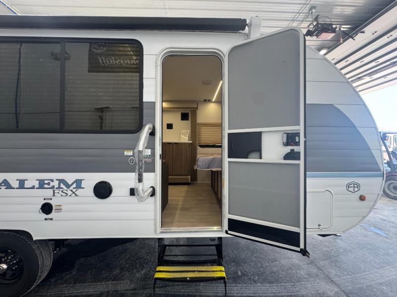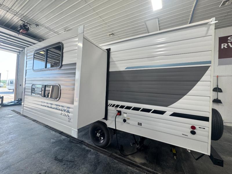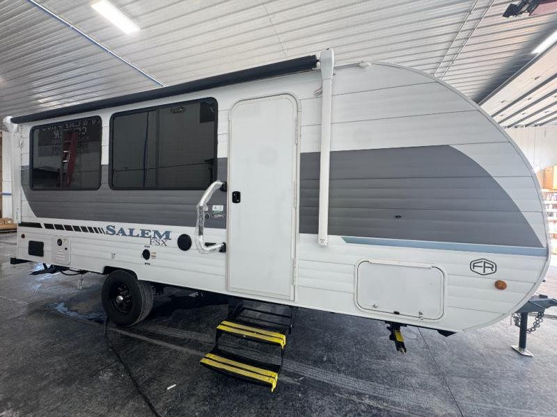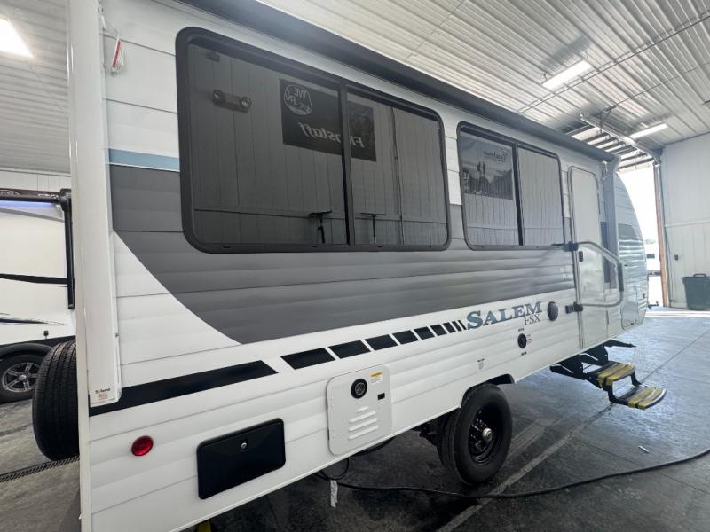 The Forest River Salem FSX travel trailers and toy hauler travel trailers are ultra comfortable and lightweight, perfect for first time or seasoned campers alike! You will love how easy it will be to relax with residential features that will make your space feel just like home, and the durable construction means you can enjoy your RV for years to come. There are a wide variety of floorplans to choose from, including couple's trailers, bunk models, and toy haulers, all with full bath and kitchen amenities and plenty of storage for all your gear!