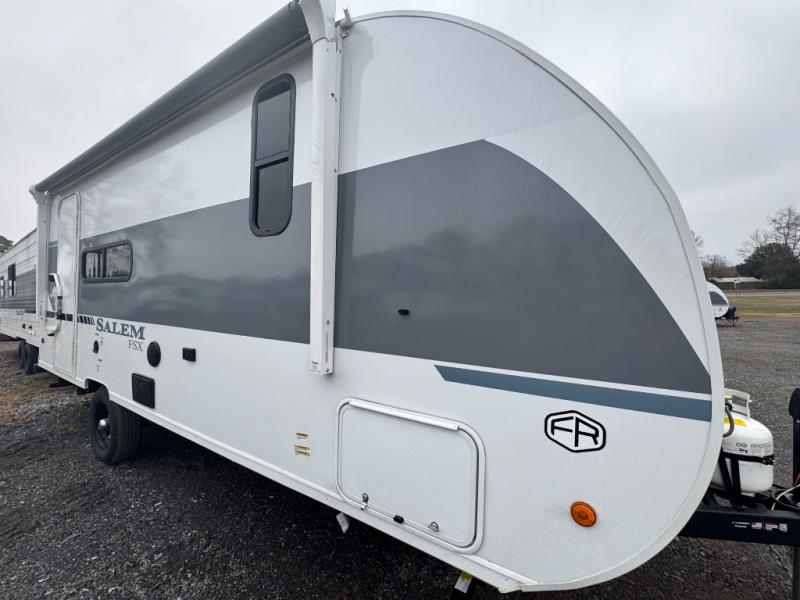 The Forest River Salem FSX travel trailers and toy hauler travel trailers are ultra comfortable and lightweight, perfect for first time or seasoned campers alike! You will love how easy it will be to relax with residential features that will make your space feel just like home, and the durable construction means you can enjoy your RV for years to come. There are a wide variety of floorplans to choose from, including couple's trailers, bunk models, and toy haulers, all with full bath and kitchen amenities and plenty of storage for all your gear!