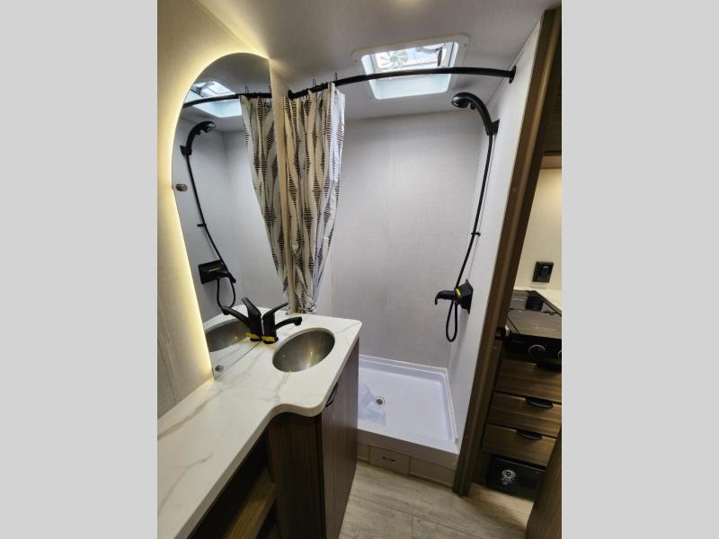 This Limited Edition Salem FSX travel trailer is the perfect couples unit or to camp solo! Included you will find a front queen bed with dual wardrobes, and an open lounge with a table where you can dine. The exterior storage has an oversized door for storage so you can fit those bigger items, and you'll appreciate the 8' 12V power awning to give you some shade. The Limited Edition Camp Ready package includes a backup camera prep, a powder coated I-beam chassis for towing durability, roof vents for airflow and natural light, plus more!