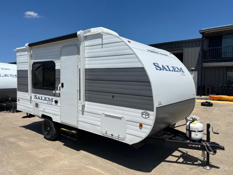The Forest River Salem FSX travel trailers and toy hauler travel trailers are ultra comfortable and lightweight, perfect for first time or seasoned campers alike! You will love how easy it will be to relax with residential features that will make your space feel just like home, and the durable construction means you can enjoy your RV for years to come. There are a wide variety of floorplans to choose from, including couple's trailers, bunk models, and toy haulers, all with full bath and kitchen amenities and plenty of storage for all your gear!