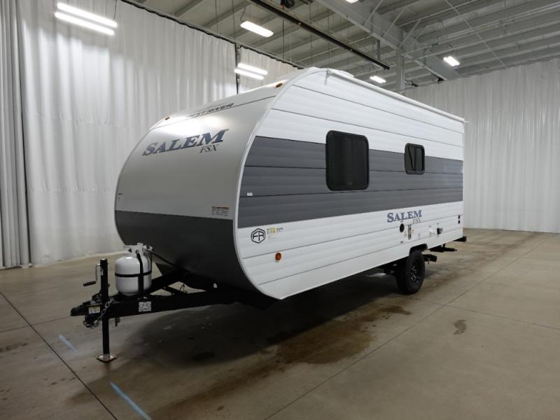 The Forest River Salem FSX travel trailers and toy hauler travel trailers are ultra comfortable and lightweight, perfect for first time or seasoned campers alike! You will love how easy it will be to relax with residential features that will make your space feel just like home, and the durable construction means you can enjoy your RV for years to come. There are a wide variety of floorplans to choose from, including couple's trailers, bunk models, and toy haulers, all with full bath and kitchen amenities and plenty of storage for all your gear!