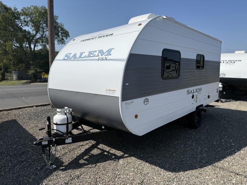 The Forest River Salem FSX travel trailers and toy hauler travel trailers are ultra comfortable and lightweight, perfect for first time or seasoned campers alike! You will love how easy it will be to relax with residential features that will make your space feel just like home, and the durable construction means you can enjoy your RV for years to come. There are a wide variety of floorplans to choose from, including couple's trailers, bunk models, and toy haulers, all with full bath and kitchen amenities and plenty of storage for all your gear!