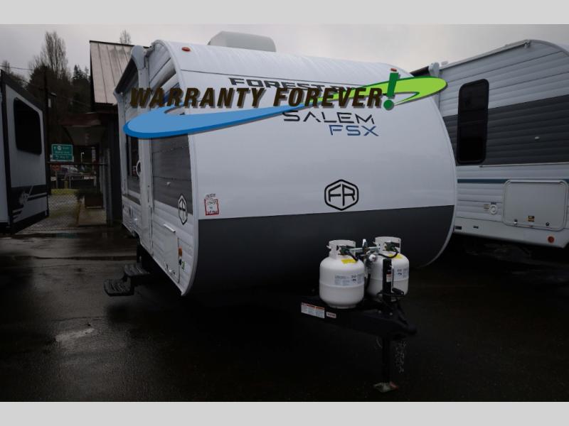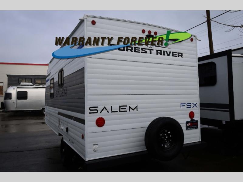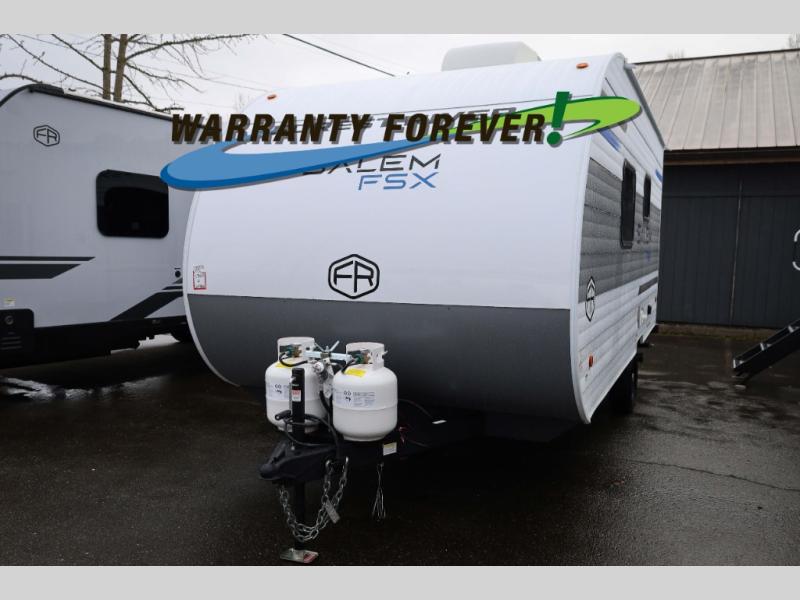 The Salem travel trailers are packed with hassle-free camping amenities and there are a variety of floorplans to choose from. The heated and enclosed Accessibelly will help protect against the elements and debris during transport, and the exterior retro/metal redesign is sure to be eye-catching! There are stylish roller shades inside, along with updated backsplash, elegant curtain rods and curtains, plus many more interior comforts! Choose a Salem travel trailer today for quality and value!