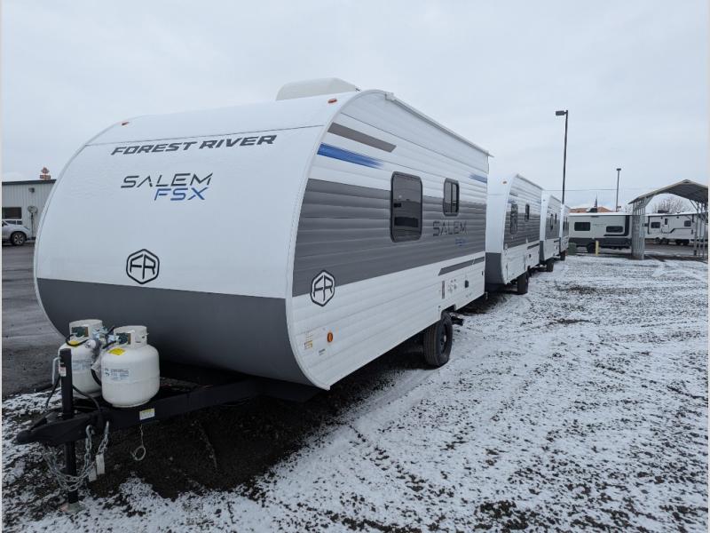 The Forest River Salem FSX travel trailers and toy hauler travel trailers are ultra comfortable and lightweight, perfect for first time or seasoned campers alike! You will love how easy it will be to relax with residential features that will make your space feel just like home, and the durable construction means you can enjoy your RV for years to come. There are a wide variety of floorplans to choose from, including couple's trailers, bunk models, and toy haulers, all with full bath and kitchen amenities and plenty of storage for all your gear!