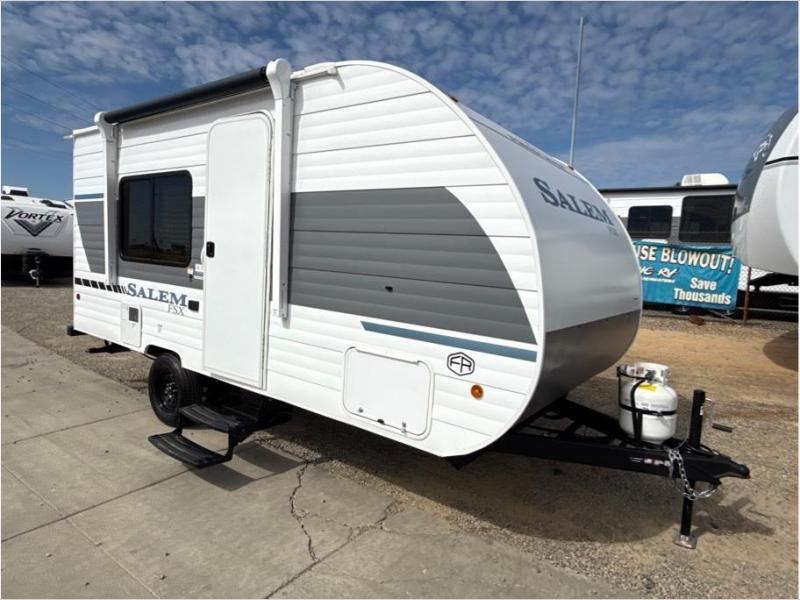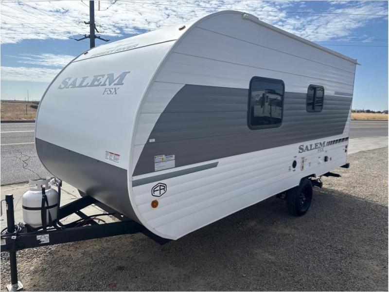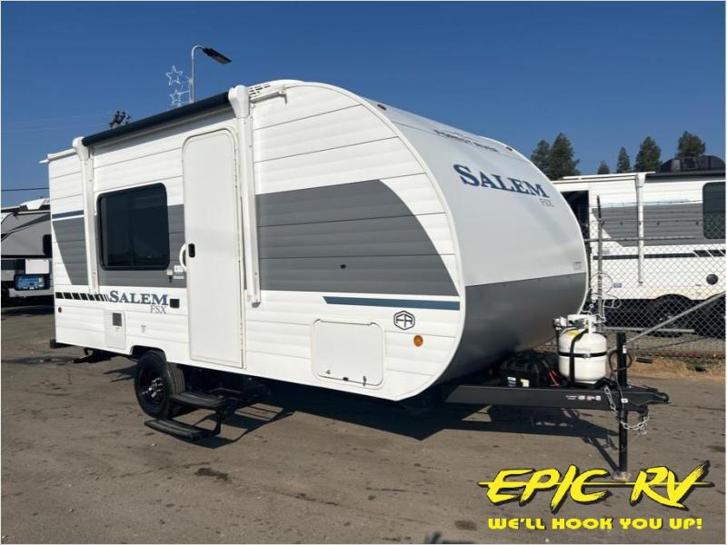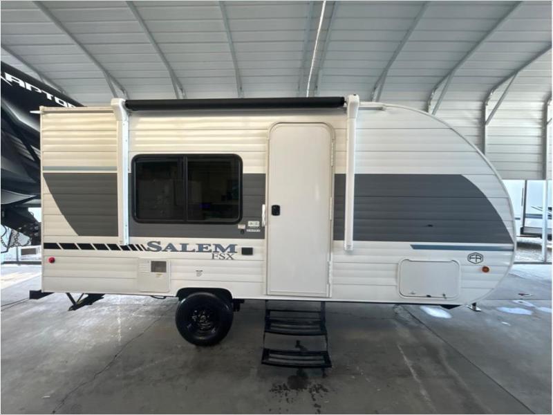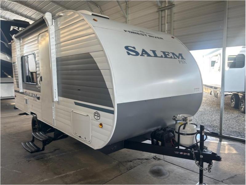 The Forest River Salem FSX travel trailers and toy hauler travel trailers are ultra comfortable and lightweight, perfect for first time or seasoned campers alike! You will love how easy it will be to relax with residential features that will make your space feel just like home, and the durable construction means you can enjoy your RV for years to come. There are a wide variety of floorplans to choose from, including couple's trailers, bunk models, and toy haulers, all with full bath and kitchen amenities and plenty of storage for all your gear!