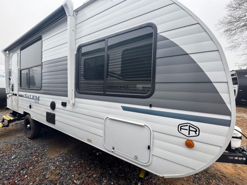 The Forest River Salem FSX travel trailers and toy hauler travel trailers are ultra comfortable and lightweight, perfect for first time or seasoned campers alike! You will love how easy it will be to relax with residential features that will make your space feel just like home, and the durable construction means you can enjoy your RV for years to come. There are a wide variety of floorplans to choose from, including couple's trailers, bunk models, and toy haulers, all with full bath and kitchen amenities and plenty of storage for all your gear!