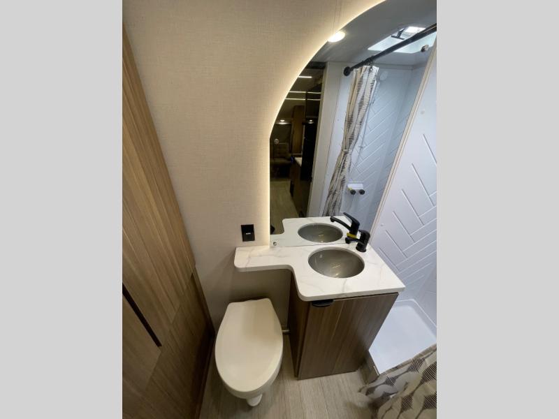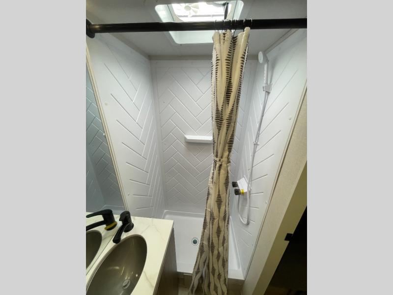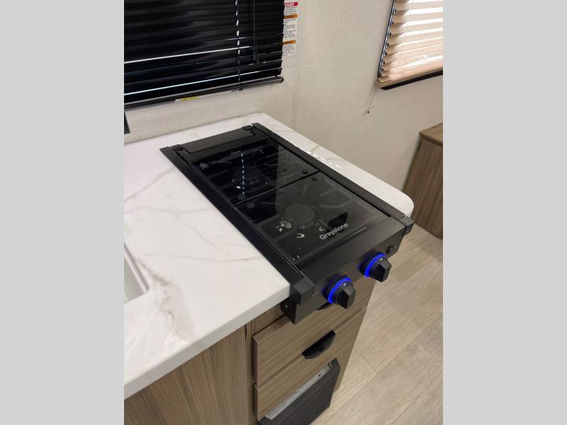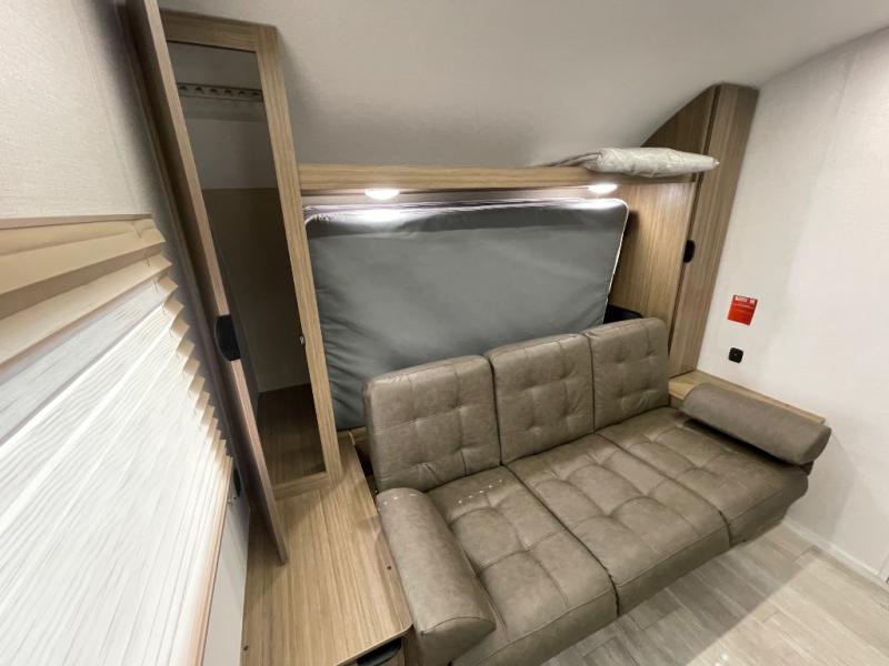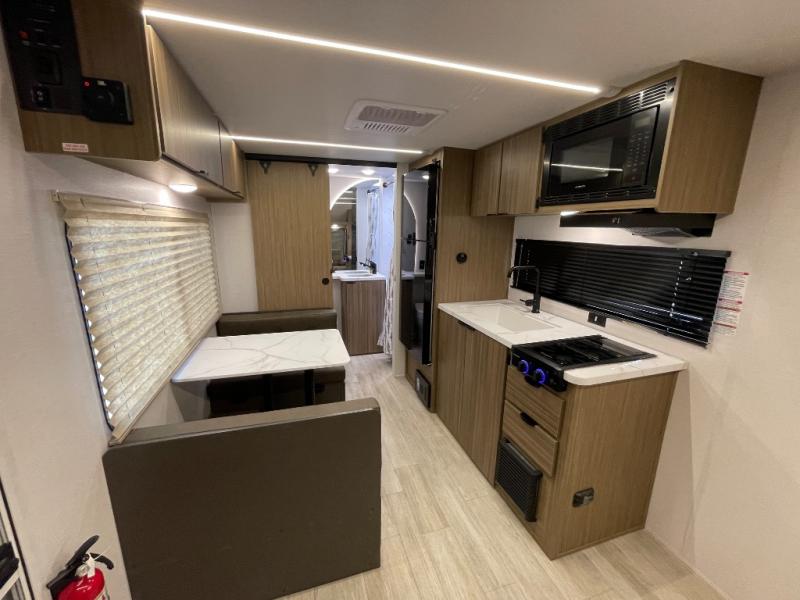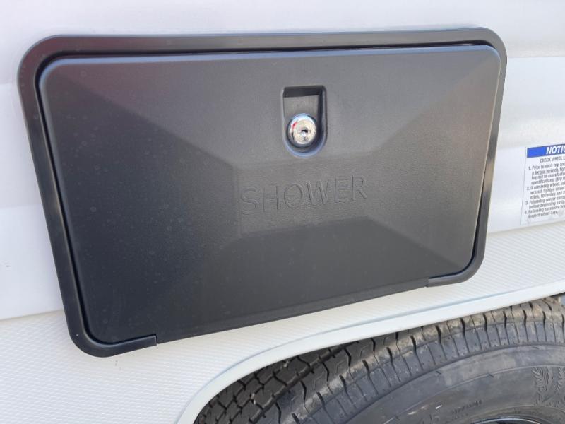 This compact travel trailer may only be 3,000 lbs. but it is still feature-packed! The front Murphy bed has a queen bed to sleep on at night and a sofa with storage access to sit on during the day. Grab some eggs from the 11 cu. ft. frost free refrigerator then fry them up on the two burner cooktop and enjoy them at the booth dinette with a large window to look out at your beautiful scenery. Freshen up each morning in the full rear bathroom with the shower with a skylight and keep the dirt outside where it belongs with the outside shower with hot and cold water. You will also enjoy the 12' power awning with LED lights that will allow you to visit outdoors each evening!
