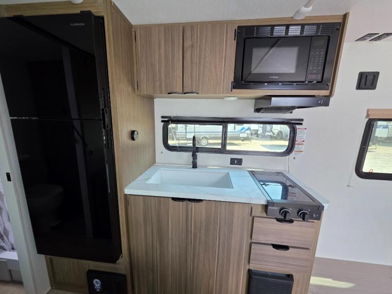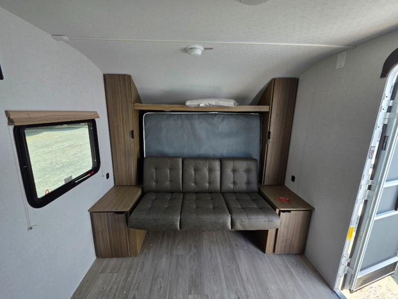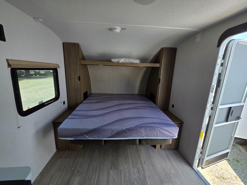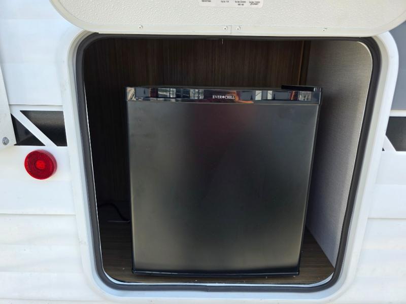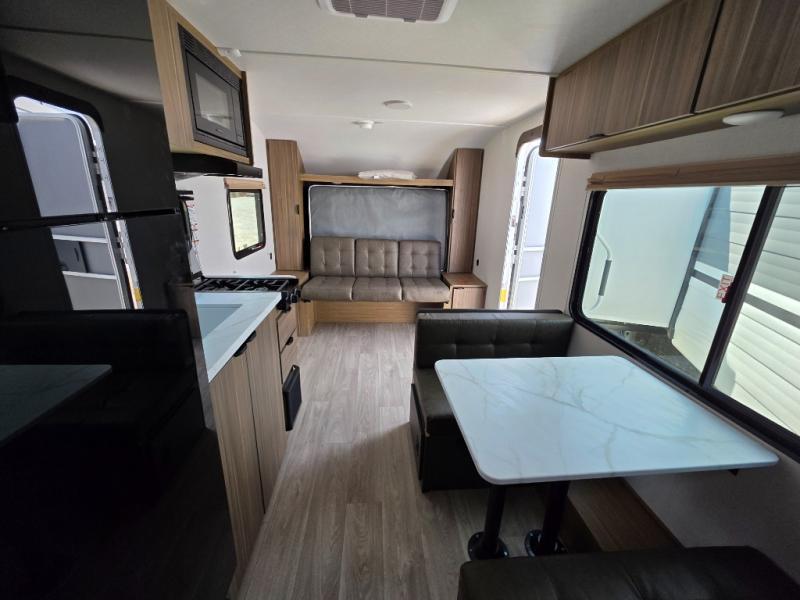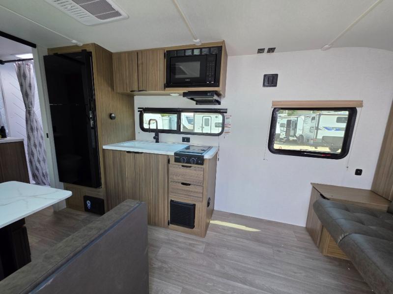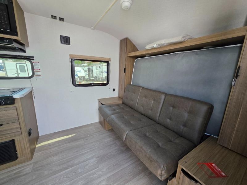 This compact travel trailer may only be 3,000 lbs. but it is still feature-packed! The front Murphy bed has a queen bed to sleep on at night and a sofa with storage access to sit on during the day. Grab some eggs from the 11 cu. ft. frost free refrigerator then fry them up on the two burner cooktop and enjoy them at the booth dinette with a large window to look out at your beautiful scenery. Freshen up each morning in the full rear bathroom with the shower with a skylight and keep the dirt outside where it belongs with the outside shower with hot and cold water. You will also enjoy the 12' power awning with LED lights that will allow you to visit outdoors each evening!