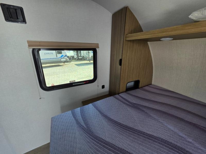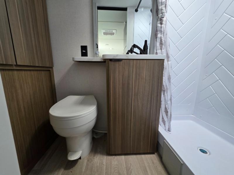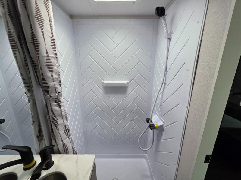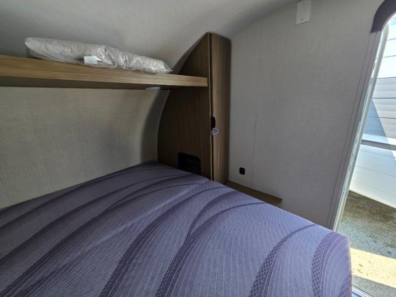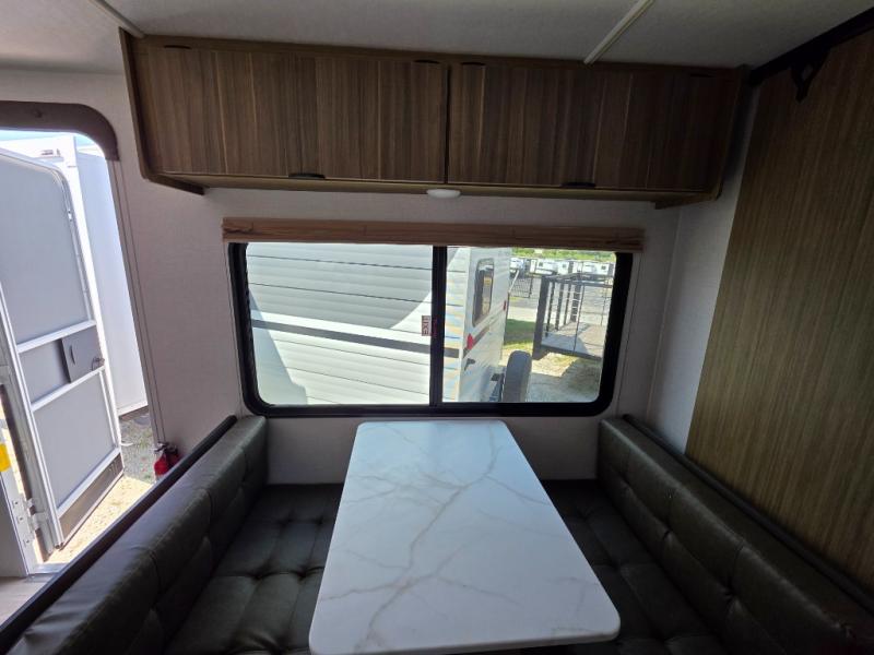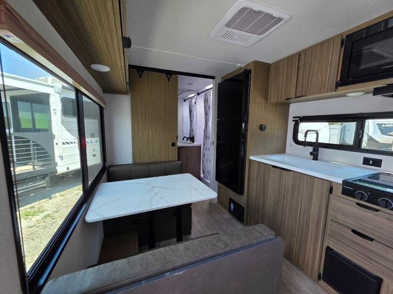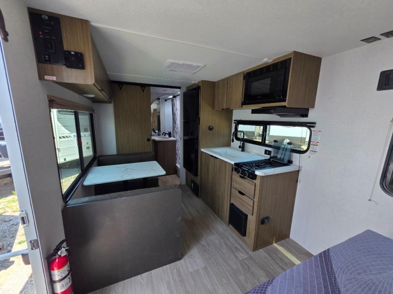 This compact travel trailer may only be 3,000 lbs. but it is still feature-packed! The front Murphy bed has a queen bed to sleep on at night and a sofa with storage access to sit on during the day. Grab some eggs from the 11 cu. ft. frost free refrigerator then fry them up on the two burner cooktop and enjoy them at the booth dinette with a large window to look out at your beautiful scenery. Freshen up each morning in the full rear bathroom with the shower with a skylight and keep the dirt outside where it belongs with the outside shower with hot and cold water. You will also enjoy the 12' power awning with LED lights that will allow you to visit outdoors each evening!