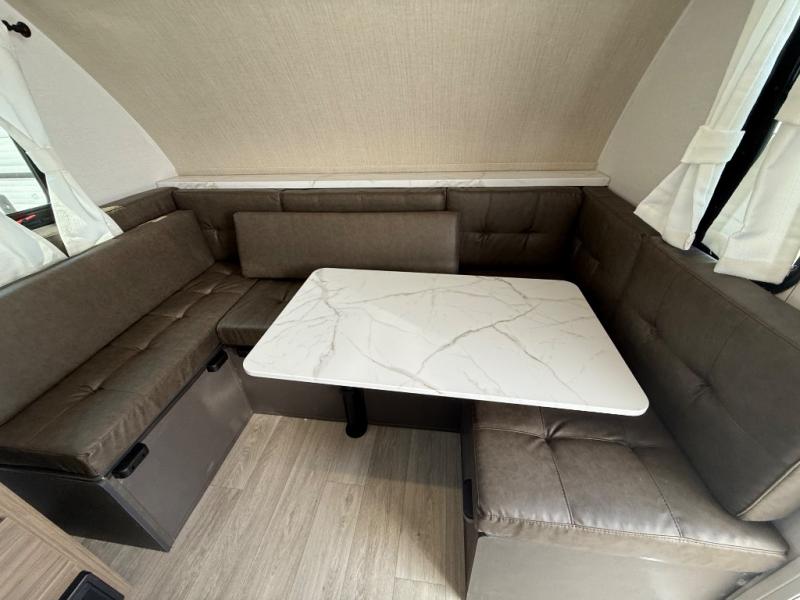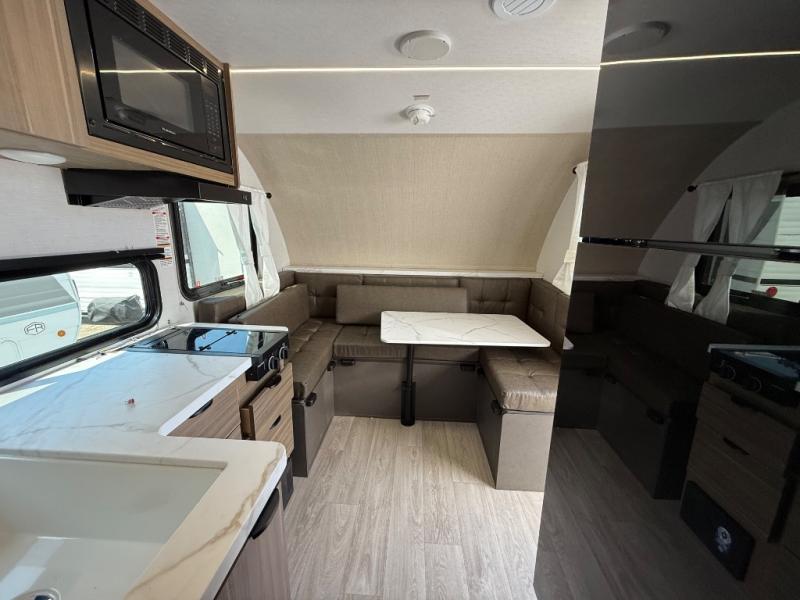This travel trailer is perfect for couples who want to explore the great outdoors together! There is a rear private bedroom with a queen bed slide for more interior space, a dresser and wardrobes on either side of it for your clothes. Plus, it enters right into the split style bathroom which will come in handy when one person wants to freshen up in the shower while another uses the private toilet and sink. You can prepare your best home cooked meals with the two burner cooktop then enjoy it at the front U-shaped dinette which can also transform into an extra sleeping space. Enjoy making pancakes on the outdoor kitchen under the 15' power awning!