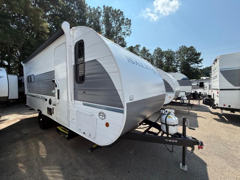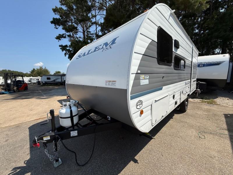 The Forest River Salem FSX travel trailers and toy hauler travel trailers are ultra comfortable and lightweight, perfect for first time or seasoned campers alike! You will love how easy it will be to relax with residential features that will make your space feel just like home, and the durable construction means you can enjoy your RV for years to come. There are a wide variety of floorplans to choose from, including couple's trailers, bunk models, and toy haulers, all with full bath and kitchen amenities and plenty of storage for all your gear!