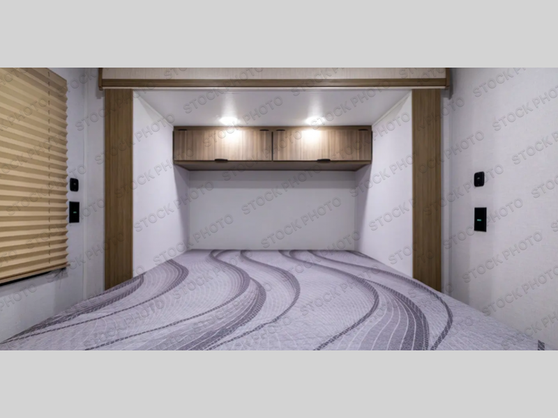 This travel trailer is perfect for couples who want to explore the great outdoors together! There is a rear private bedroom with a queen bed slide for more interior space, a dresser and wardrobes on either side of it for your clothes. Plus, it enters right into the split style bathroom which will come in handy when one person wants to freshen up in the shower while another uses the private toilet and sink. You can prepare your best home cooked meals with the two-burner cooktop then enjoy it at the front U-shaped dinette which can also transform into an extra sleeping space. Enjoy making pancakes on the outdoor kitchen under the 15' power awning!