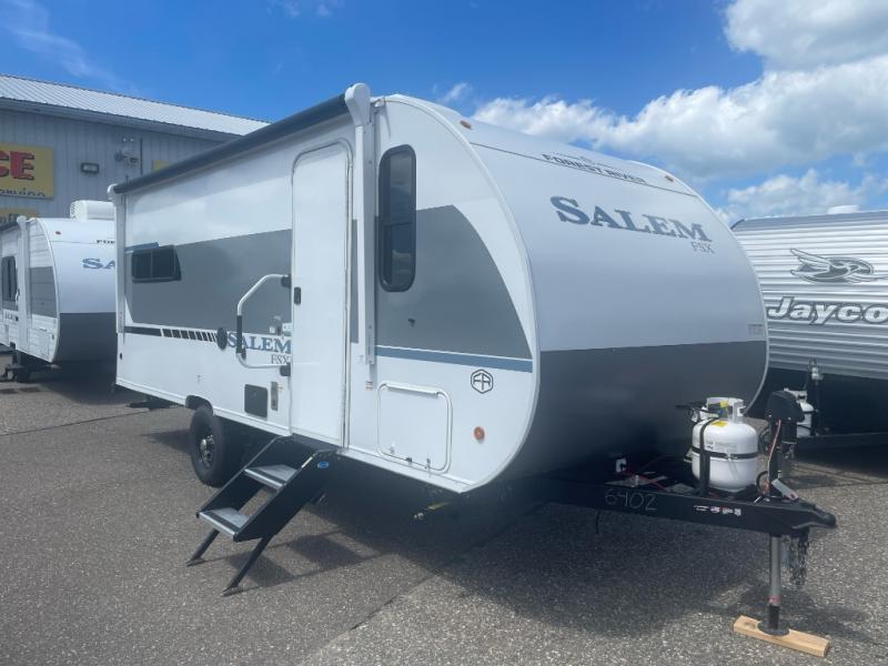 The Forest River Salem FSX travel trailers and toy hauler travel trailers are ultra comfortable and lightweight, perfect for first time or seasoned campers alike! You will love how easy it will be to relax with residential features that will make your space feel just like home, and the durable construction and easy to maintain fiberglass exterior means you can enjoy your RV for years to come. There are a wide variety of floorplans to choose from, including couple's trailers, bunk models, and toy haulers, all with full bath and kitchen amenities and plenty of storage for all your gear!