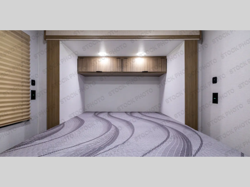 This travel trailer is perfect for couples who want to explore the great outdoors together! There is a rear private bedroom with a queen bed slide for more interior space, a dresser and wardrobes on either side of it for your clothes. Plus, it enters right into the split style bathroom which will come in handy when one person wants to freshen up in the shower while another uses the private toilet and sink. You can prepare your best home cooked meals with the two-burner cooktop then enjoy it at the front U-shaped dinette which can also transform into an extra sleeping space. Enjoy making pancakes on the outdoor kitchen under the 15' power awning!