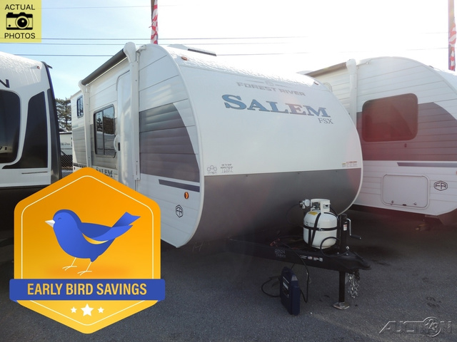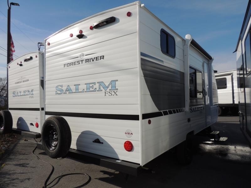 The Forest River Salem FSX travel trailers and toy hauler travel trailers are ultra comfortable and lightweight, perfect for first time or seasoned campers alike! You will love how easy it will be to relax with residential features that will make your space feel just like home, and the durable construction means you can enjoy your RV for years to come. There are a wide variety of floorplans to choose from, including couple's trailers, bunk models, and toy haulers, all with full bath and kitchen amenities and plenty of storage for all your gear!