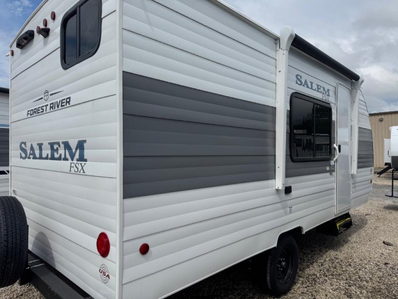 The Forest River Salem FSX travel trailers and toy hauler travel trailers are ultra comfortable and lightweight, perfect for first time or seasoned campers alike! You will love how easy it will be to relax with residential features that will make your space feel just like home, and the durable construction means you can enjoy your RV for years to come. There are a wide variety of floorplans to choose from, including couple's trailers, bunk models, and toy haulers, all with full bath and kitchen amenities and plenty of storage for all your gear!