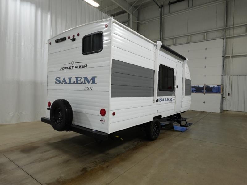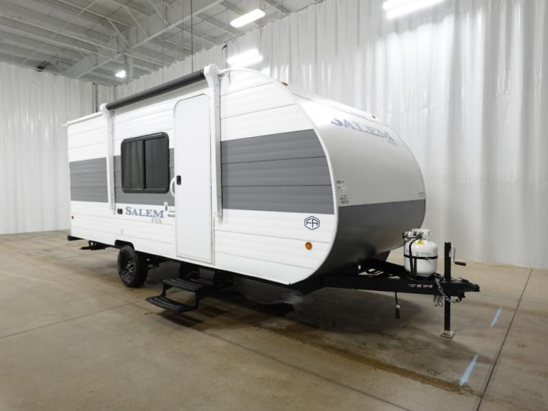 The Forest River Salem FSX travel trailers and toy hauler travel trailers are ultra comfortable and lightweight, perfect for first time or seasoned campers alike! You will love how easy it will be to relax with residential features that will make your space feel just like home, and the durable construction means you can enjoy your RV for years to come. There are a wide variety of floorplans to choose from, including couple's trailers, bunk models, and toy haulers, all with full bath and kitchen amenities and plenty of storage for all your gear!