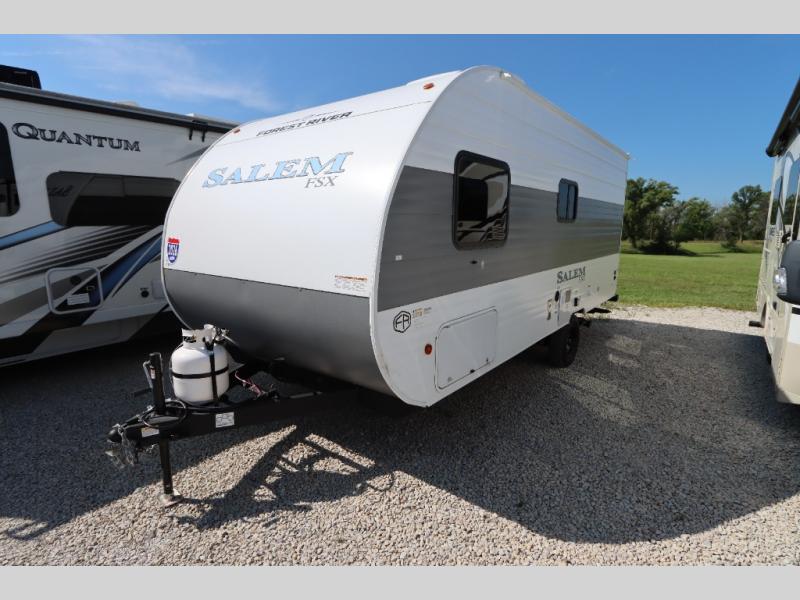The Forest River Salem FSX travel trailers and toy hauler travel trailers are ultra comfortable and lightweight, perfect for first time or seasoned campers alike! You will love how easy it will be to relax with residential features that will make your space feel just like home, and the durable construction means you can enjoy your RV for years to come. There are a wide variety of floorplans to choose from, including couple's trailers, bunk models, and toy haulers, all with full bath and kitchen amenities and plenty of storage for all your gear!