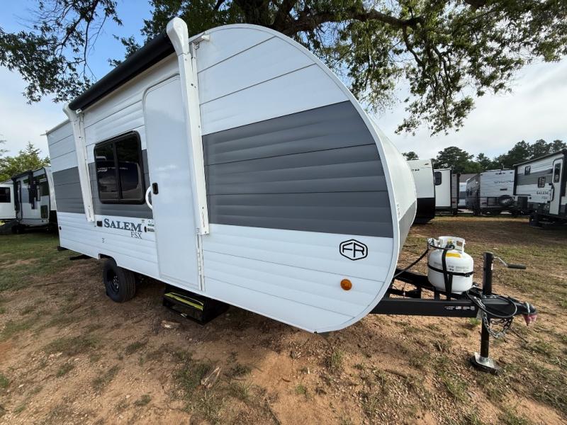 The Forest River Salem FSX travel trailers and toy hauler travel trailers are ultra comfortable and lightweight, perfect for first time or seasoned campers alike! You will love how easy it will be to relax with residential features that will make your space feel just like home, and the durable construction means you can enjoy your RV for years to come. There are a wide variety of floorplans to choose from, including couple's trailers, bunk models, and toy haulers, all with full bath and kitchen amenities and plenty of storage for all your gear!