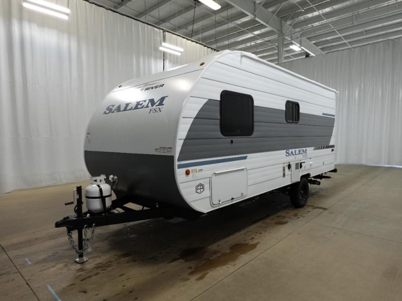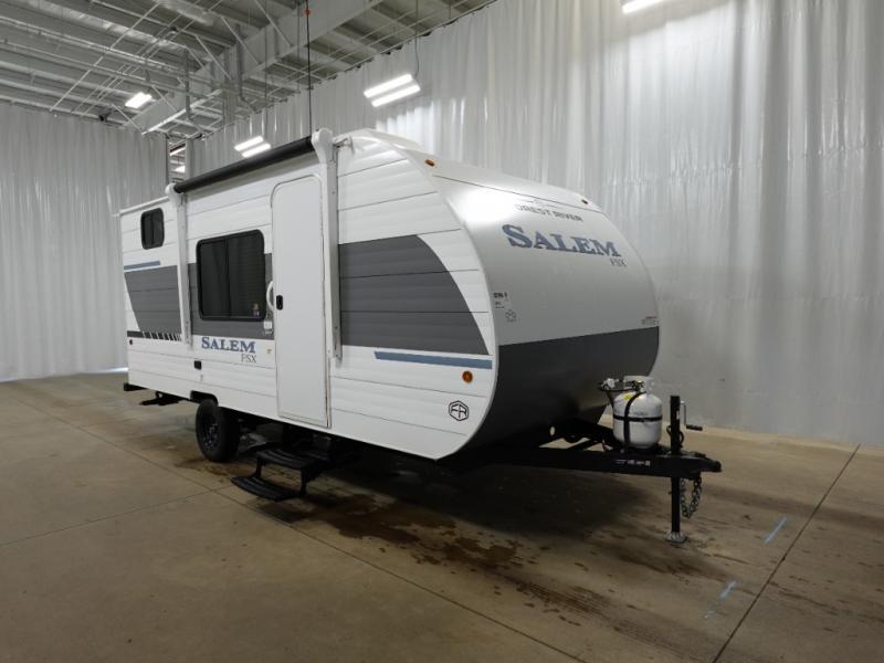 The Forest River Salem FSX travel trailers and toy hauler travel trailers are ultra comfortable and lightweight, perfect for first time or seasoned campers alike! You will love how easy it will be to relax with residential features that will make your space feel just like home, and the durable construction means you can enjoy your RV for years to come. There are a wide variety of floorplans to choose from, including couple's trailers, bunk models, and toy haulers, all with full bath and kitchen amenities and plenty of storage for all your gear!