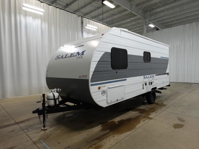 The Forest River Salem FSX travel trailers and toy hauler travel trailers are ultra comfortable and lightweight, perfect for first time or seasoned campers alike! You will love how easy it will be to relax with residential features that will make your space feel just like home, and the durable construction means you can enjoy your RV for years to come. There are a wide variety of floorplans to choose from, including couple's trailers, bunk models, and toy haulers, all with full bath and kitchen amenities and plenty of storage for all your gear!