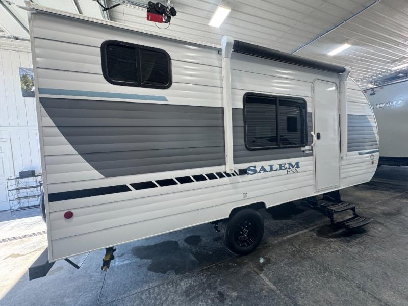 The Forest River Salem FSX travel trailers and toy hauler travel trailers are ultra comfortable and lightweight, perfect for first time or seasoned campers alike! You will love how easy it will be to relax with residential features that will make your space feel just like home, and the durable construction means you can enjoy your RV for years to come. There are a wide variety of floorplans to choose from, including couple's trailers, bunk models, and toy haulers, all with full bath and kitchen amenities and plenty of storage for all your gear!