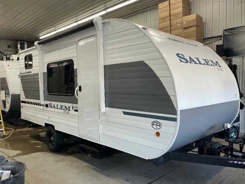 The Forest River Salem FSX travel trailers and toy hauler travel trailers are ultra comfortable and lightweight, perfect for first time or seasoned campers alike! You will love how easy it will be to relax with residential features that will make your space feel just like home, and the durable construction means you can enjoy your RV for years to come. There are a wide variety of floorplans to choose from, including couple's trailers, bunk models, and toy haulers, all with full bath and kitchen amenities and plenty of storage for all your gear!