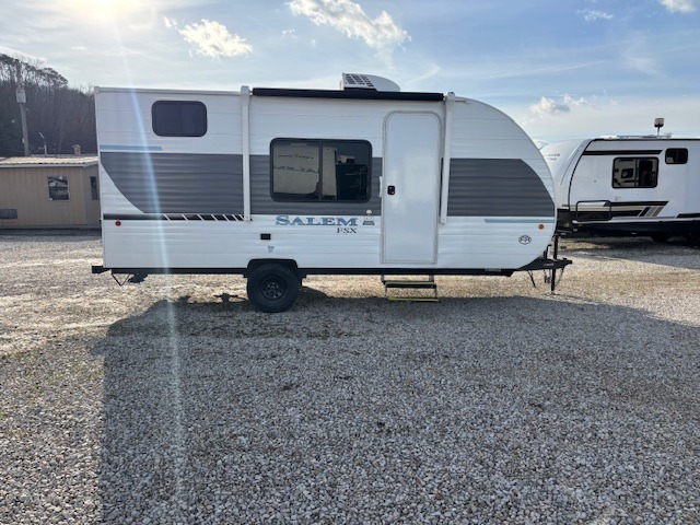 The Forest River Salem FSX travel trailers and toy hauler travel trailers are ultra comfortable and lightweight, perfect for first time or seasoned campers alike! You will love how easy it will be to relax with residential features that will make your space feel just like home, and the durable construction means you can enjoy your RV for years to come. There are a wide variety of floorplans to choose from, including couple's trailers, bunk models, and toy haulers, all with full bath and kitchen amenities and plenty of storage for all your gear!