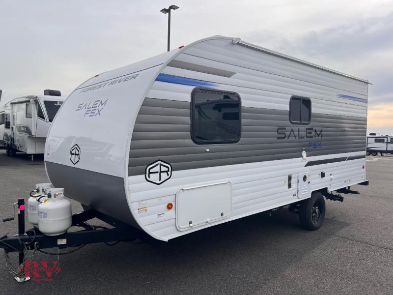 The Forest River Salem FSX travel trailers and toy hauler travel trailers are ultra comfortable and lightweight, perfect for first time or seasoned campers alike! You will love how easy it will be to relax with residential features that will make your space feel just like home, and the durable construction means you can enjoy your RV for years to come. There are a wide variety of floorplans to choose from, including couple's trailers, bunk models, and toy haulers, all with full bath and kitchen amenities and plenty of storage for all your gear!