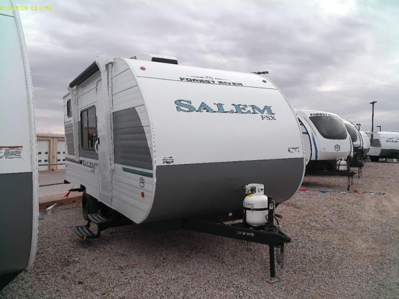 The Forest River Salem FSX travel trailers and toy hauler travel trailers are ultra comfortable and lightweight, perfect for first time or seasoned campers alike! You will love how easy it will be to relax with residential features that will make your space feel just like home, and the durable construction means you can enjoy your RV for years to come. There are a wide variety of floorplans to choose from, including couple's trailers, bunk models, and toy haulers, all with full bath and kitchen amenities and plenty of storage for all your gear!