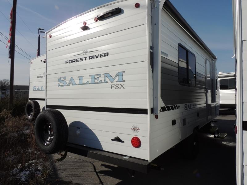 The Forest River Salem FSX travel trailers and toy hauler travel trailers are ultra comfortable and lightweight, perfect for first time or seasoned campers alike! You will love how easy it will be to relax with residential features that will make your space feel just like home, and the durable construction means you can enjoy your RV for years to come. There are a wide variety of floorplans to choose from, including couple's trailers, bunk models, and toy haulers, all with full bath and kitchen amenities and plenty of storage for all your gear!