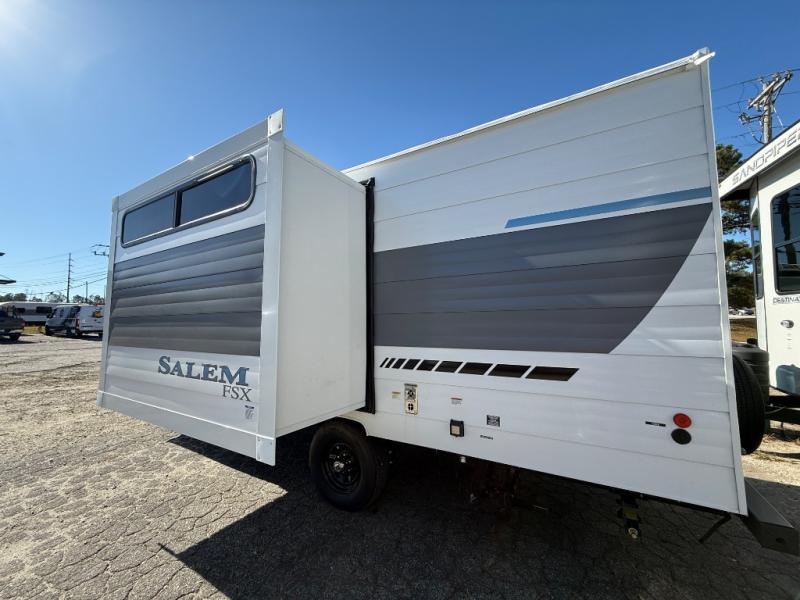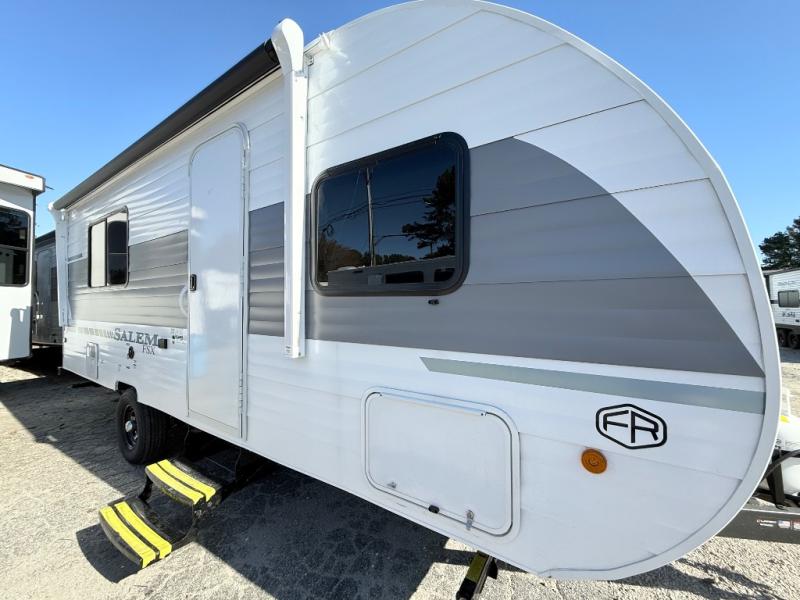 The Forest River Salem FSX travel trailers and toy hauler travel trailers are ultra comfortable and lightweight, perfect for first time or seasoned campers alike! You will love how easy it will be to relax with residential features that will make your space feel just like home, and the durable construction means you can enjoy your RV for years to come. There are a wide variety of floorplans to choose from, including couple's trailers, bunk models, and toy haulers, all with full bath and kitchen amenities and plenty of storage for all your gear!