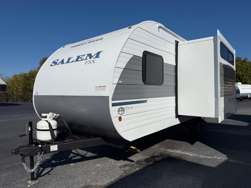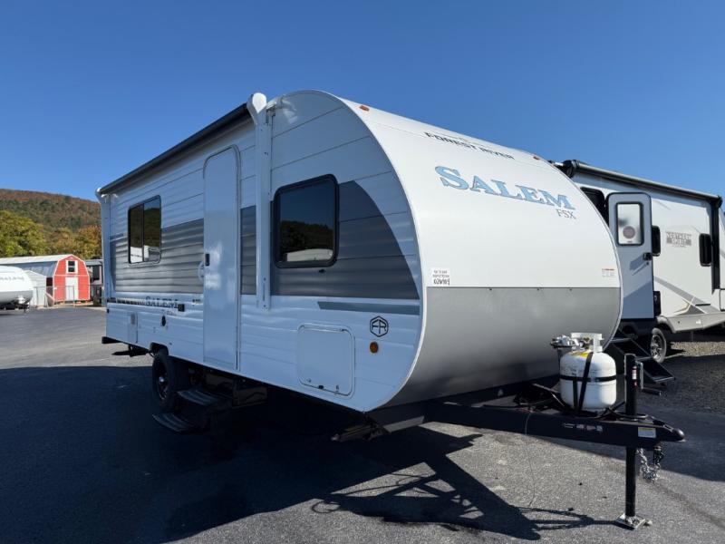 The Forest River Salem FSX travel trailers and toy hauler travel trailers are ultra comfortable and lightweight, perfect for first time or seasoned campers alike! You will love how easy it will be to relax with residential features that will make your space feel just like home, and the durable construction means you can enjoy your RV for years to come. There are a wide variety of floorplans to choose from, including couple's trailers, bunk models, and toy haulers, all with full bath and kitchen amenities and plenty of storage for all your gear!