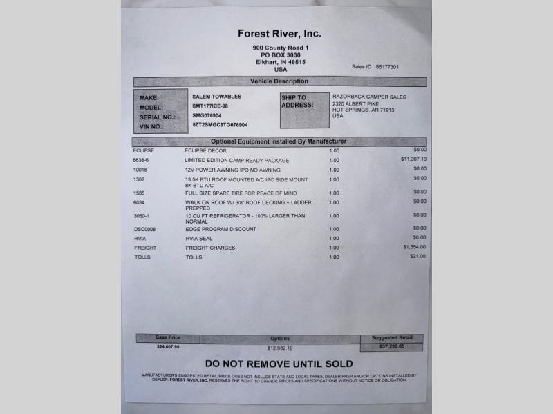 Forest River Salem FSX Limited Edition travel trailer 177ICE highlights: