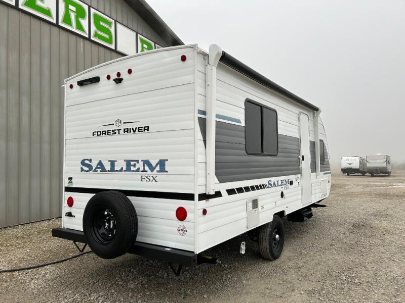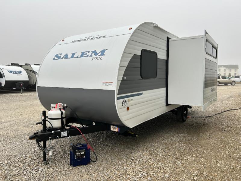The Forest River Salem FSX travel trailers and toy hauler travel trailers are ultra comfortable and lightweight, perfect for first time or seasoned campers alike! You will love how easy it will be to relax with residential features that will make your space feel just like home, and the durable construction means you can enjoy your RV for years to come. There are a wide variety of floorplans to choose from, including couple's trailers, bunk models, and toy haulers, all with full bath and kitchen amenities and plenty of storage for all your gear!