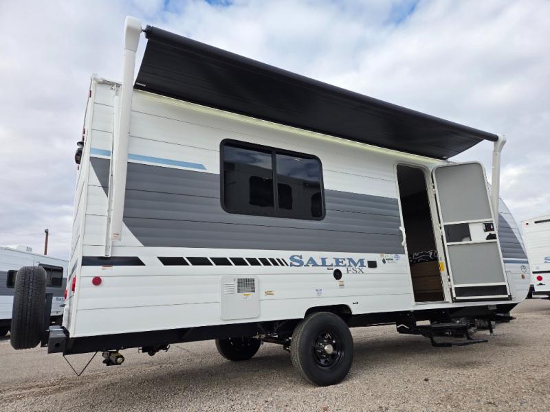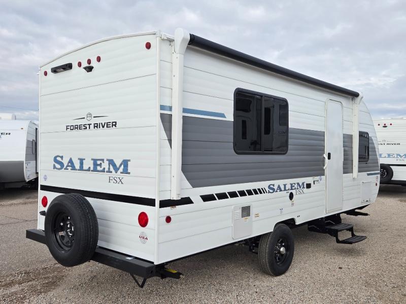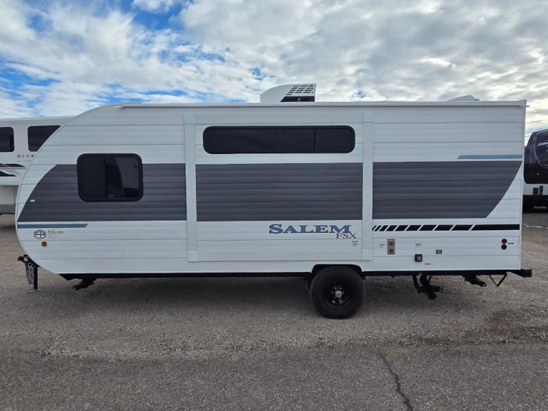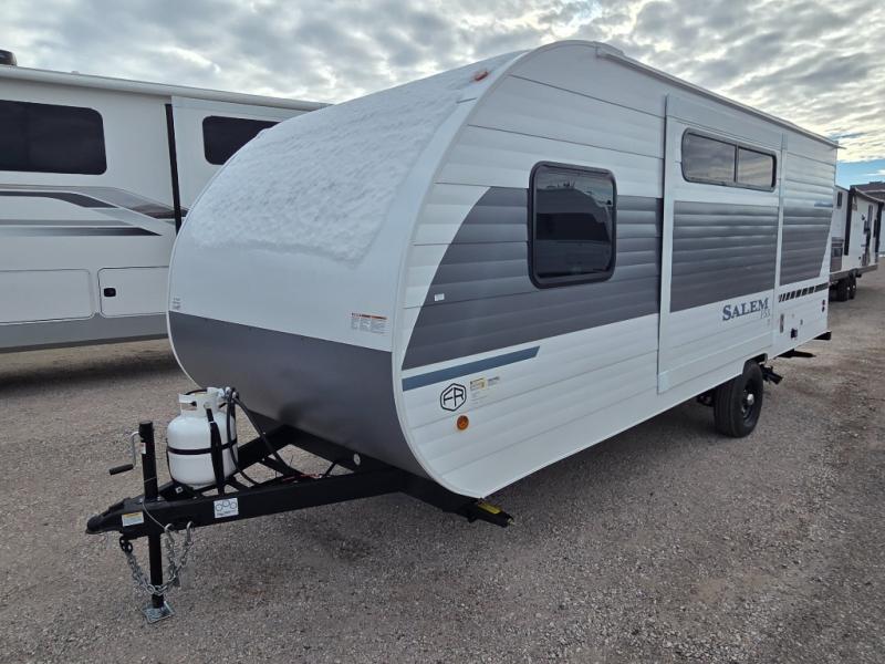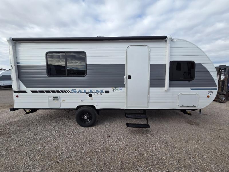 The Forest River Salem FSX travel trailers and toy hauler travel trailers are ultra comfortable and lightweight, perfect for first time or seasoned campers alike! You will love how easy it will be to relax with residential features that will make your space feel just like home, and the durable construction means you can enjoy your RV for years to come. There are a wide variety of floorplans to choose from, including couple's trailers, bunk models, and toy haulers, all with full bath and kitchen amenities and plenty of storage for all your gear!