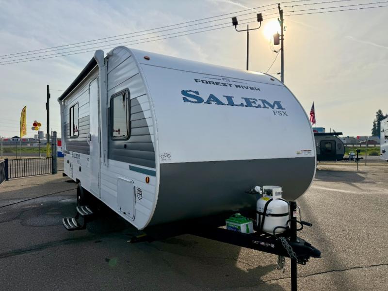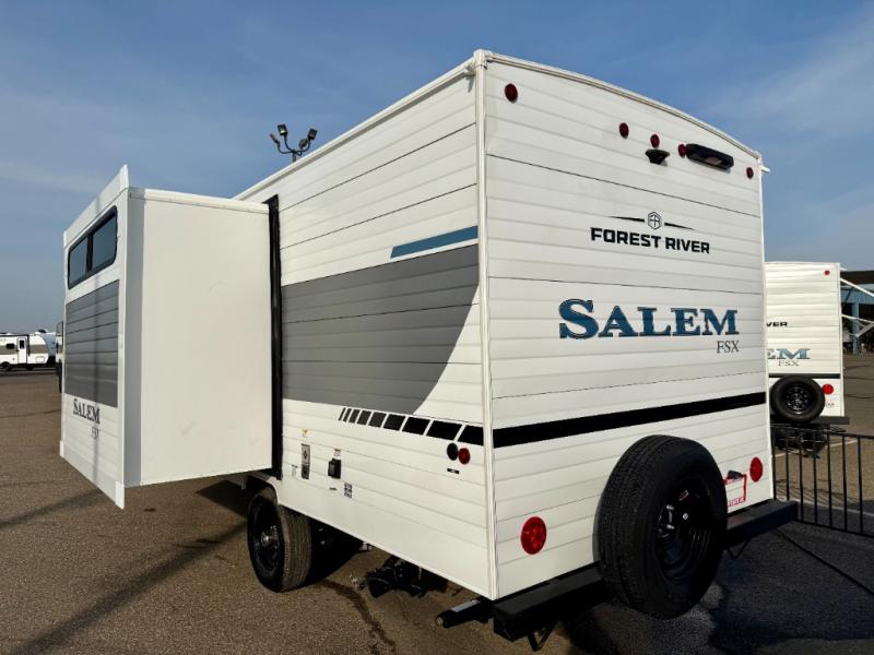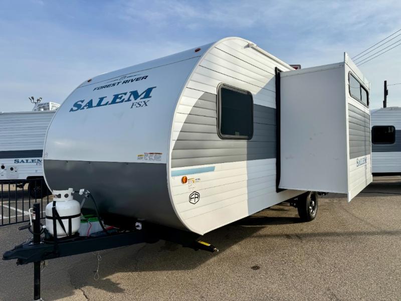 The Forest River Salem FSX travel trailers and toy hauler travel trailers are ultra comfortable and lightweight, perfect for first time or seasoned campers alike! You will love how easy it will be to relax with residential features that will make your space feel just like home, and the durable construction means you can enjoy your RV for years to come. There are a wide variety of floorplans to choose from, including couple's trailers, bunk models, and toy haulers, all with full bath and kitchen amenities and plenty of storage for all your gear!