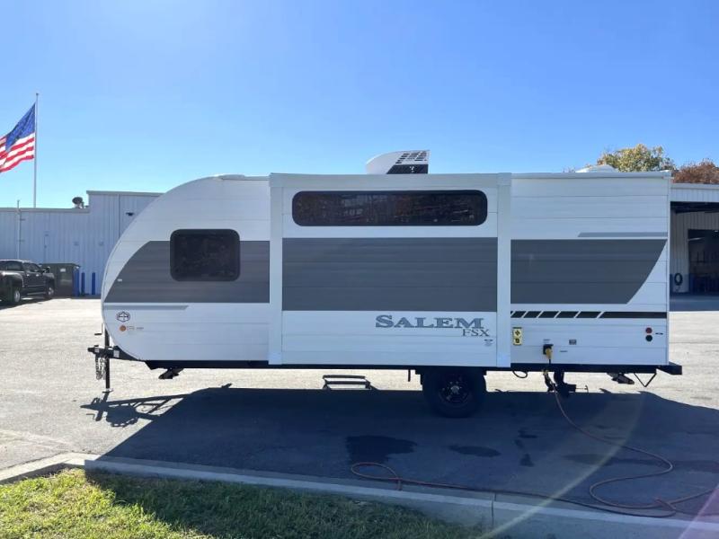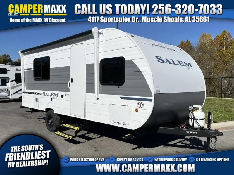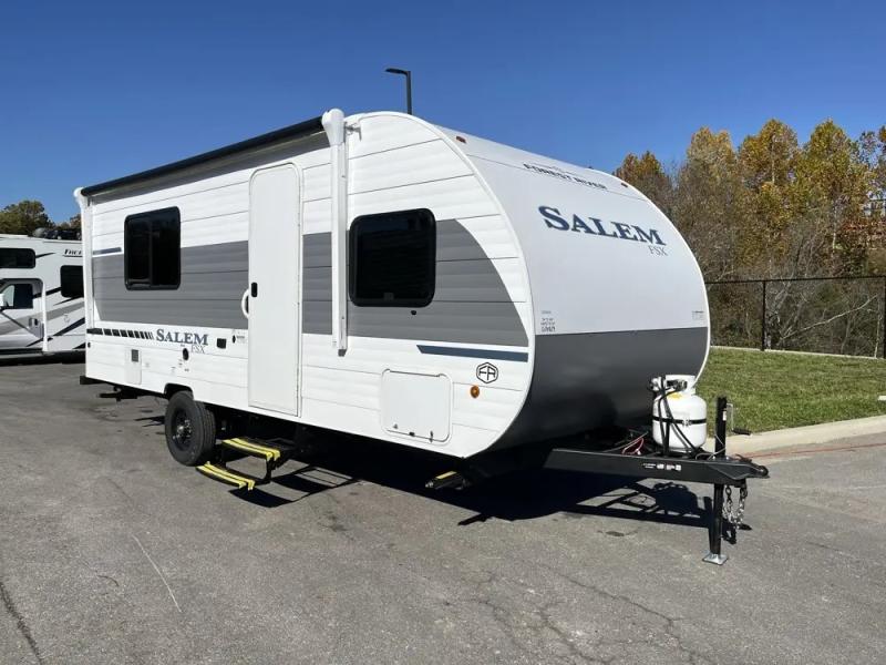 The Forest River Salem FSX travel trailers and toy hauler travel trailers are ultra comfortable and lightweight, perfect for first time or seasoned campers alike! You will love how easy it will be to relax with residential features that will make your space feel just like home, and the durable construction means you can enjoy your RV for years to come. There are a wide variety of floorplans to choose from, including couple's trailers, bunk models, and toy haulers, all with full bath and kitchen amenities and plenty of storage for all your gear!